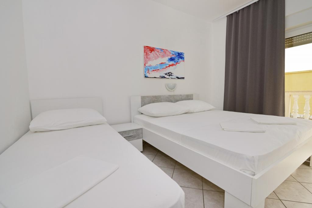 V první řadě jsme rádi, že jste nás vybrali jako potenciální dovolenou na Jadranu. Apartmány Jandrok se nacházejí v městě Pirovac (Vodice) poblíž města Šibenik. Apartmány Jandrok jsou moderně vybavené apartmány kategorizované vysokými 3 hvězdičkami a mohou se pochlubit špičkovou kvalitou a nabídkou. Jsou navrženy pro ubytování až 4 osob s možností přistýlky a obsahují dva pokoje, kuchyň, koupelnu, balkon a zajištěné parkovací místo. V objektu je v současné době 6 apartmánů. Apartmány Jandrok jsou navrženy tak, aby splňovaly nejvyšší standardy, včetně klimatizovaných pokojů, které mohou být v případě potřeby chlazeny nebo vyhřívané, televizory s použitím pozemních a satelitních programů. Mimo objekt se nachází velmi pěkné grilování a venkovní sprcha. Samotné zařízení má pohodlný přístup, vlastní parkoviště, v blízkosti centra místa (350m-5min) a poblíž místní pláže (350m-5min). Vzhledem k velkému zájmu se prosím obraťte na čas.