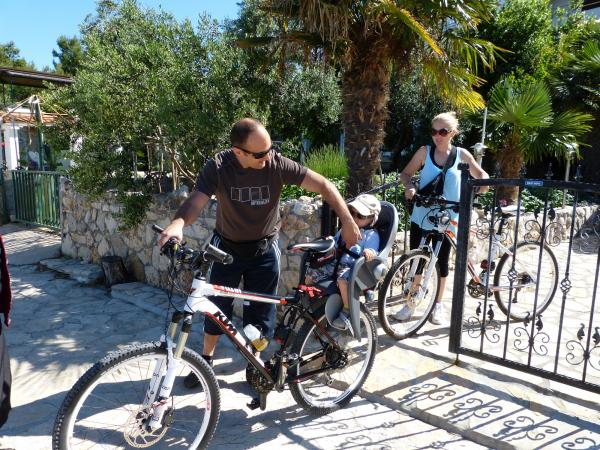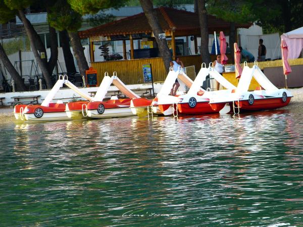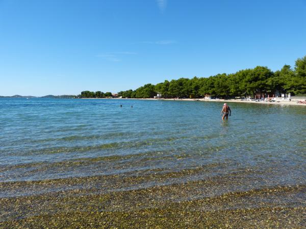 Na dvoře můžete využít sprchu s teplou vodou, plážová lehátka, gril, kvalitní kola. Parkování pro 1 vozidlo na apartmán. Máme místo pro kola, se kterým můžete objíždět široké okolí, je zde řada cyklostezek. V okolí je možnost zapůjčení lodiček, šlapadel apod., organizované výlety na Kornati, Navštívit můžete větší města, vydat se do NP Krka nebo do přírodního parku Vranské jezero (ptačí rezervace, lze i rybařit ). Léčivé bahno (peloidy) můžete využít na dně zátoky Pirovačka. Máme rakety na tenis, míčky, badminton, . Budete se cítit jako doma, pohodlně, uvolněně. Apartmány mají označení Bezpečný pobyt v Chorvatsku
