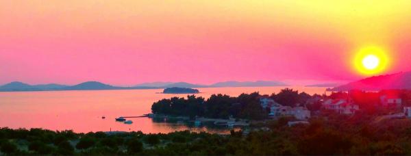 Nádherný výhled na moře a západ slunce z terasy vašeho bytu. Doslova 1 minutu chůze na dobře upravenou oblázkovou pláž s přírodním stínem. Do centra města se dostanete po pláži směrem na jihovýchod. Vzdálenost do centra Pirovac je cca 1500m (15min chůze). Nacházíme se v západní části města Pirovac, nedaleko vchodu do kempu Miran. Dům byl postaven v roce 1982 a apartmány byly zrekonstruovány v roce 2018. Našim hostům nabízíme slušné, čisté a uklizené ubytování s krásným výhledem na moře a západ slunce za férovou cenu. Není tu žádný luxus jako ve 4hvězdičkových apartmánech, ale získáváme body v kategorii „hodnota za peníze“. Dům se nachází v bezprostřední blízkosti dvou národních parků, Kornati a Krka, a jsme jen 5 kilometrů od přírodního parku Vranské jezero. Mírné klima, krásné zátoky, oblázkové pláže s přirozeným stínem staletých borovic, teplé moře, nádherné západy slunce – to jsou jedinečné požitky a zážitky pro všechny návštěvníky Pirovacu, který byl vždy místem pro privilegované k odpočinku a užívání si