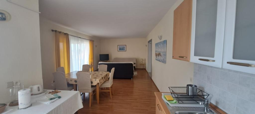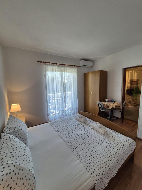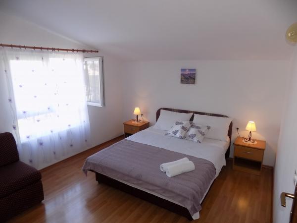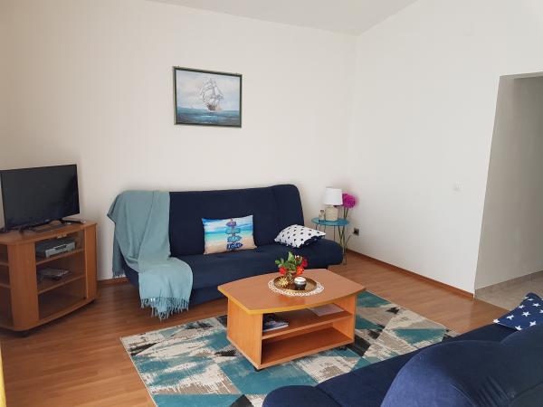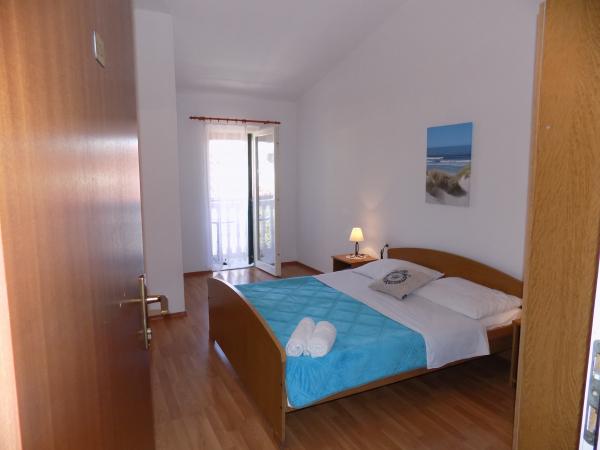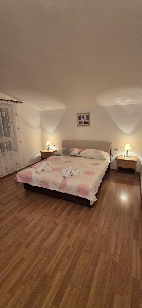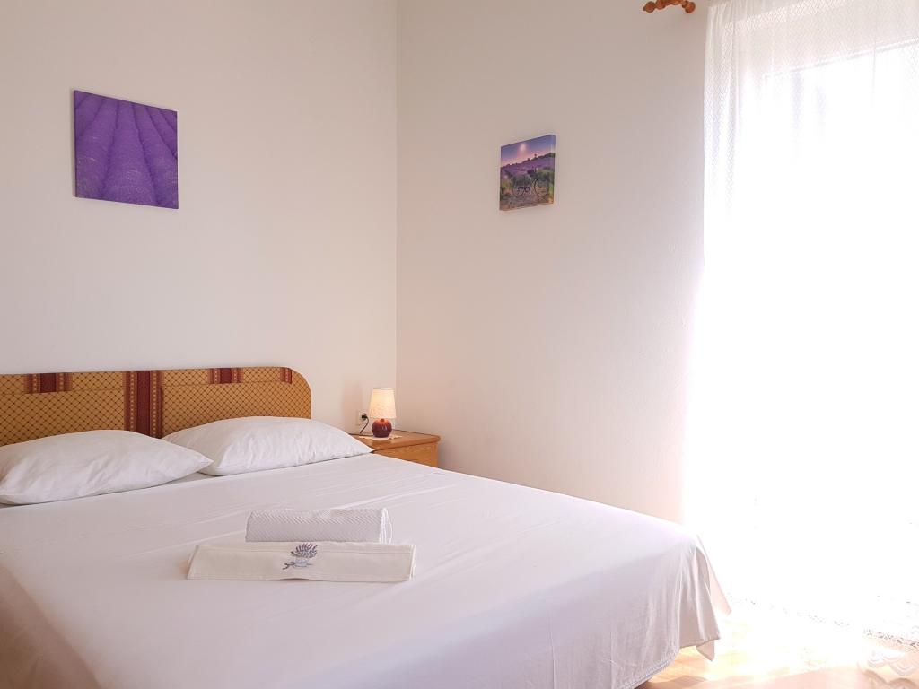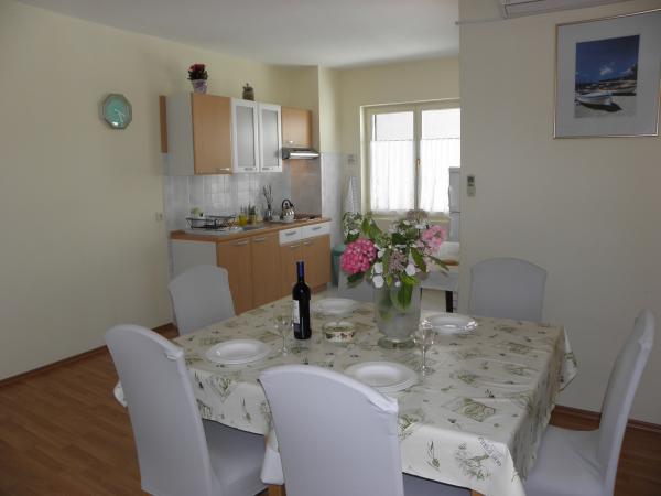 Apartmány Kristina jsou vzdáleny pouhých 150-200 m od centra a pláže, jsou poměrně prostorné a s řadou vybavení, aby se hosté cítili pohodlně a jako doma. Všechny tři apartmány jsou plně vybaveny kuchyní, obývacím pokojem (všechny pohovky jsou rozkládací), klimatizací a TV (satelitní programy). Dva apartmány o rozloze 90 m² (v 1. a 2. patře) jsou světlé, vzdušné, s terasou o rozloze 20 m² s výhledem na moře a mají dvě prostorné ložnice, přičemž každý pokoj má koupelnu a ventilátor. Apartmán o rozloze 40 m² má balkon o rozloze 5 m². K dispozici je jedna ložnice o rozloze 15 m² s koupelnou, klimatizací a lednicí (na chodbě). V celém objektu je k dispozici bezplatné Wi-Fi a na chodbě u vchodu je malá knihovna (police s brožurami, knihami v několika cizích jazycích, časopisy). Před domem je velké parkoviště. Rezervace, podmínky a další informace naleznete v poznámkách. Kalendář rezervací je aktualizován. Těšíme se na váš příjezd!