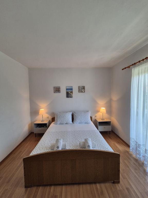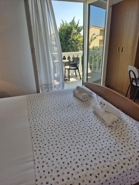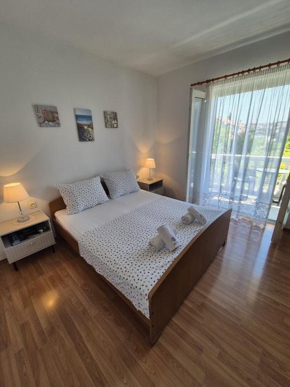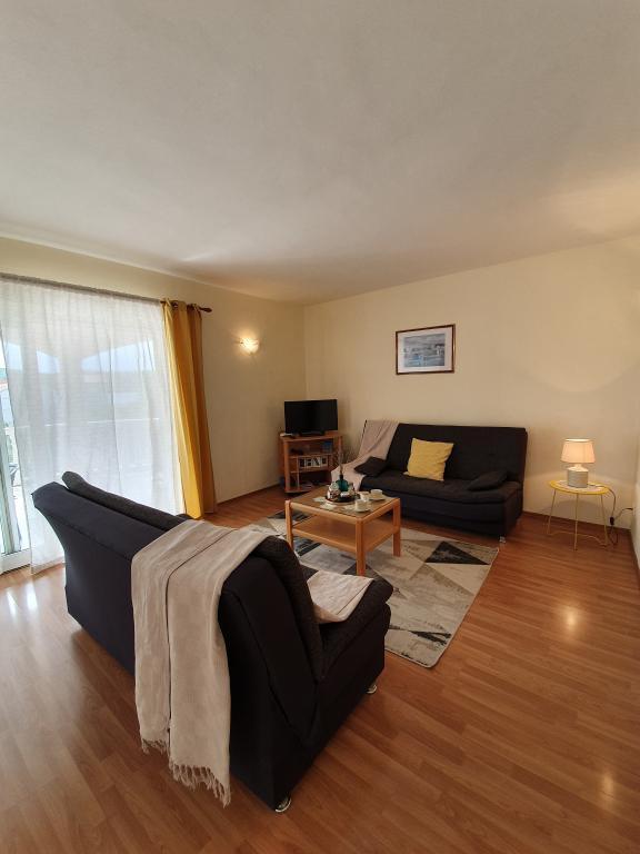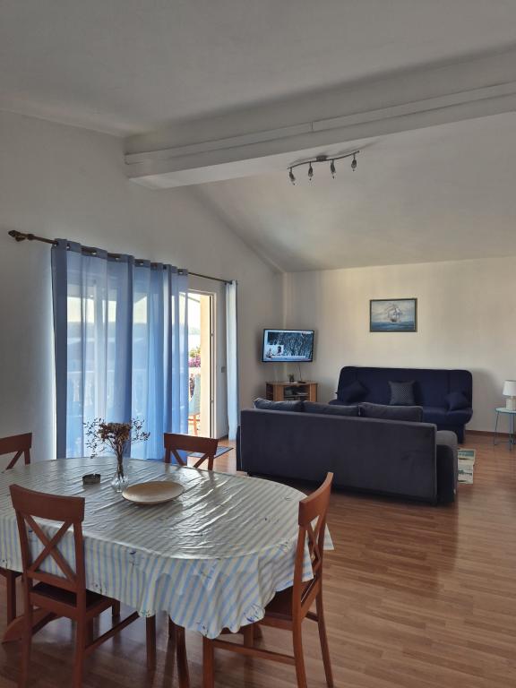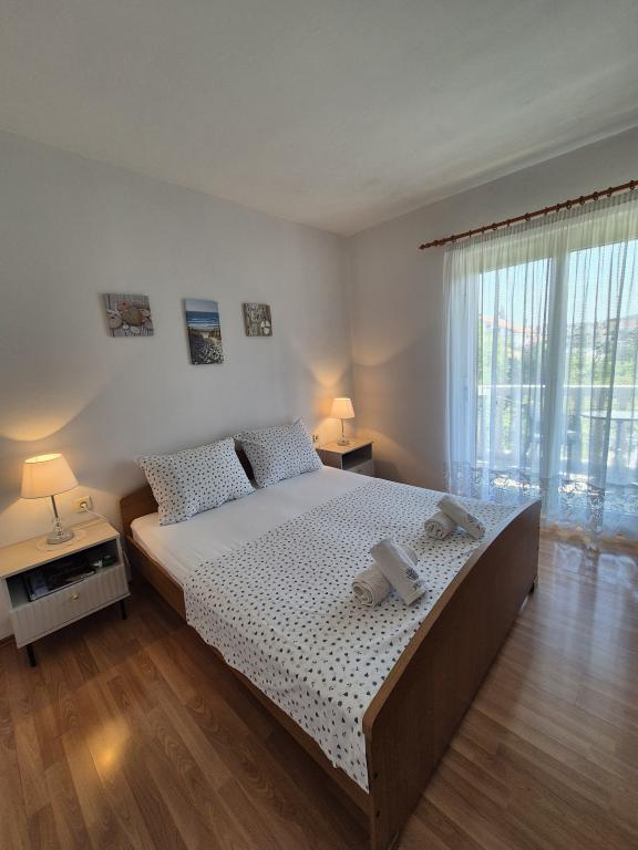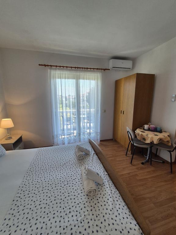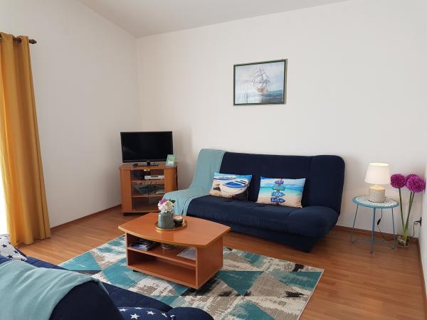 Apartmány Kristina jsou vzdáleny pouhých 150-200 m od centra a pláže, jsou poměrně prostorné a s řadou vybavení, aby se hosté cítili pohodlně a jako doma. Všechny tři apartmány jsou plně vybaveny kuchyní, obývacím pokojem (všechny pohovky jsou rozkládací), klimatizací a TV (satelitní programy). Dva apartmány o rozloze 90 m² (v 1. a 2. patře) jsou světlé, vzdušné, s terasou o rozloze 20 m² s výhledem na moře a mají dvě prostorné ložnice, přičemž každý pokoj má koupelnu a ventilátor. Apartmán o rozloze 40 m² má balkon o rozloze 5 m². K dispozici je jedna ložnice o rozloze 15 m² s koupelnou, klimatizací a lednicí (na chodbě). V celém objektu je k dispozici bezplatné Wi-Fi a na chodbě u vchodu je malá knihovna (police s brožurami, knihami v několika cizích jazycích, časopisy). Před domem je velké parkoviště. Rezervace, podmínky a další informace naleznete v poznámkách. Kalendář rezervací je aktualizován. Těšíme se na váš příjezd!
