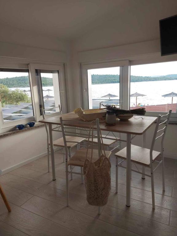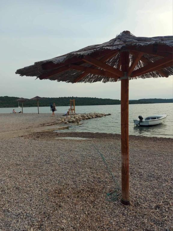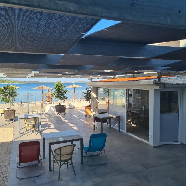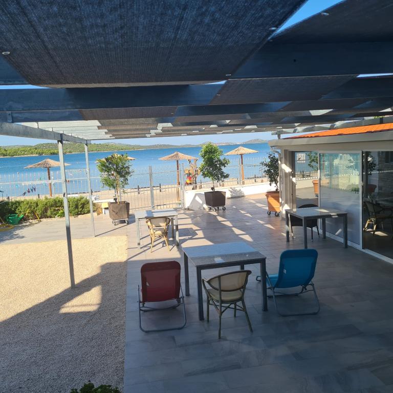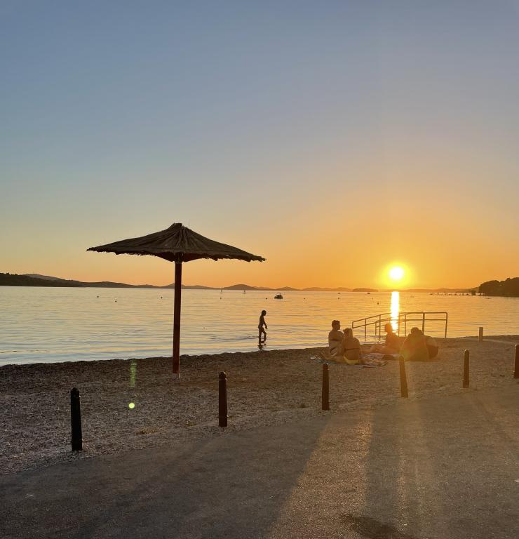 Rodinný dům v první řadě u moře na hlavní pláži v Pirovac. K dispozici je 7 apartmánů, z nichž některé jsou 4 a některé 3 hvězdičky. Téměř všechny apartmány, s výjimkou jednoho studiového apartmánu, mají výhled na moře a hlavní pláž před domem. Terasy jsou velké a prostorné, mají střešní panely jako ochranu před stínem a poskytují komfort při vychutnávání si výhledu na moře a okolní ostrovy. Ve dvoře pro naše hosty nabízíme: plážová lehátka, plynový gril, sprchu a WC pro naše hosty. Dvůr je od loňského roku nově zrekonstruován, městský nádech kamene, který vyzařuje harmonii a čistotu, umělecké dílo - Větrná růžice u samého vstupu do dvora, diskrétní kovaný plot, který nabízí panoramatický výhled na tento kousek ráj. Všichni hosté obdrží 1 l extra panenského olivového oleje jako dárek při odjezdu a čekají na ně v apartmánu: láhev Studene, láhev 0,7 dcl extra panenského olivového oleje a 0,7 dcl domácího ořechu na ochutnání a vychutnání na výroční . Protože každoroční by měl být hédonismus a všechno ostatní jsou příběhy!