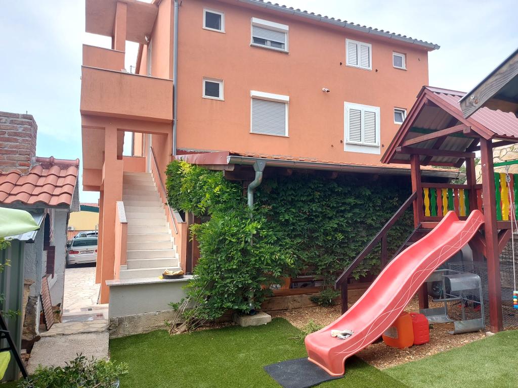 Apartmány jsou vybaveny vším, co rodina potřebuje pro příjemný pobyt ... (balkon s výhledem na moře, wifi, klimatizace, vybavená kuchyň, vybavená koupelna, kola, parkoviště, zázemí pro děti, zahradní terasa s grilem, ložní prádlo, ručníky .. Zařízení se nachází v klidné části Pirovac ... 10 minut chůze od centra (800 m.) A 3 minuty chůze na pláž (200 m.) Hosté mají k dispozici dětské hřiště v oploceném areálu. dvůr (dům se skluzavkou, pískovištěm a různými houpačkami, hračkami) ... grilování se vším, co potřebujete (dřevěné uhlí, dřevo, nádobí na pečení)