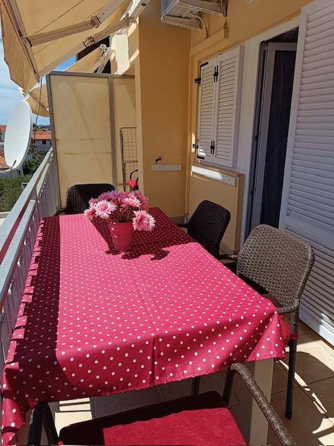 Byt byl čistý a funkční, na velmi velké a krásné terase ve stínu, tento byt má také velkou houpačku, na které můžete spát venku v horkých letních nocích. Parkovací místo je ve stínu a pod střechou. Město, kde se pořád něco děje, i pro děti, obchody, bary s velmi dobrým jídlem a dobrými cenami a pláž, vše je blízko. Největší radost jsme ale měli z mimořádné vstřícnosti majitelů, jsou vždy k dispozici, velmi starostliví a mnohokrát nás pobavili. Mimořádný. Doporučujeme pro páry a rodiny. Janja a Rudi