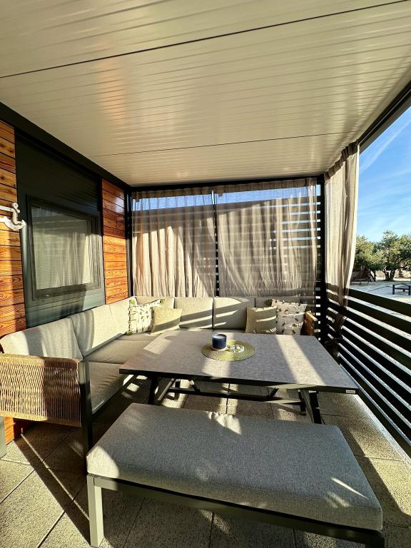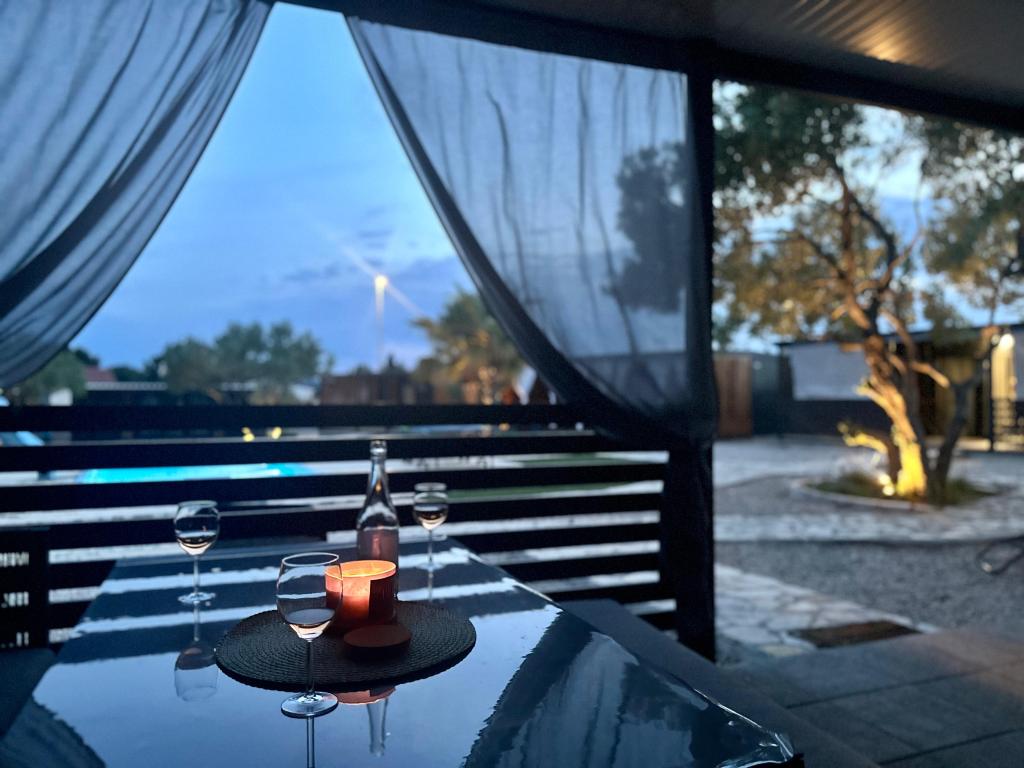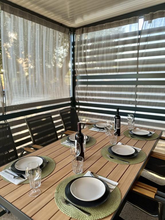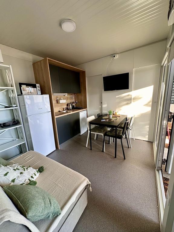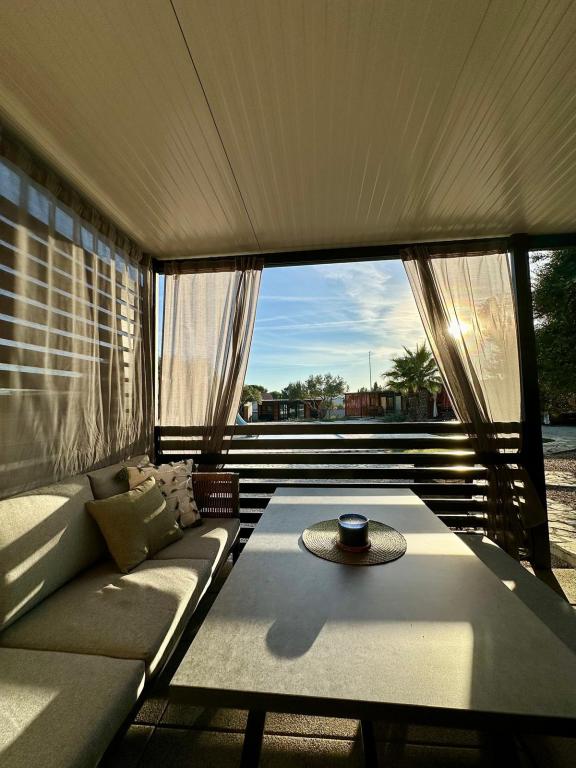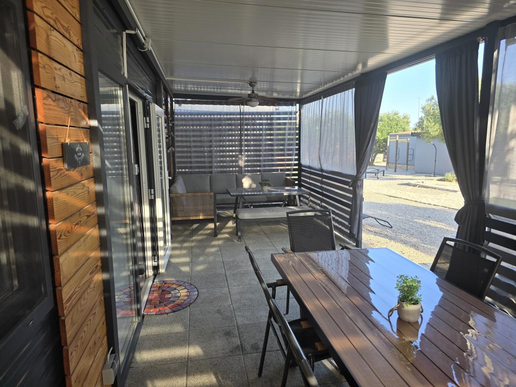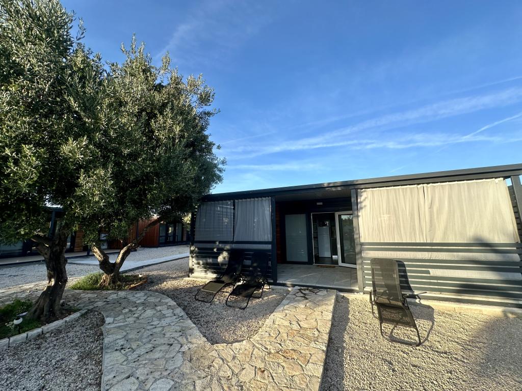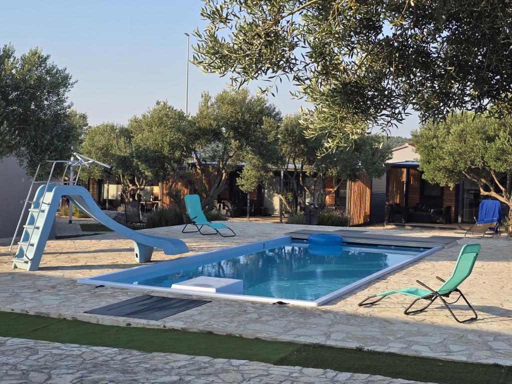 Mobilní dům Maslina – Vaše klidná oáza u moře. Vítejte v mobilním domě Maslina, moderně zařízeném mobilním domě, který se nachází v klidné části Pirovace, pouhých 200 m od pláže. Dům pojme až 5 osob a má dvě ložnice s celkem 4 lůžky, obývací pokoj s rozkládací pohovkou, vybavenou kuchyň a koupelnu. Užijte si velkou krytou terasu s výhledem na bazén – ideální pro ranní kávu nebo večerní relaxaci. Hosté mají také přístup k parkovacímu místu. Mobilní dům Maslina je ideální pro rodinnou dovolenou, klid, přírodu a blízkost moře. Zažijte pohostinnost Dalmácie a rezervujte si dovolenou ještě dnes!