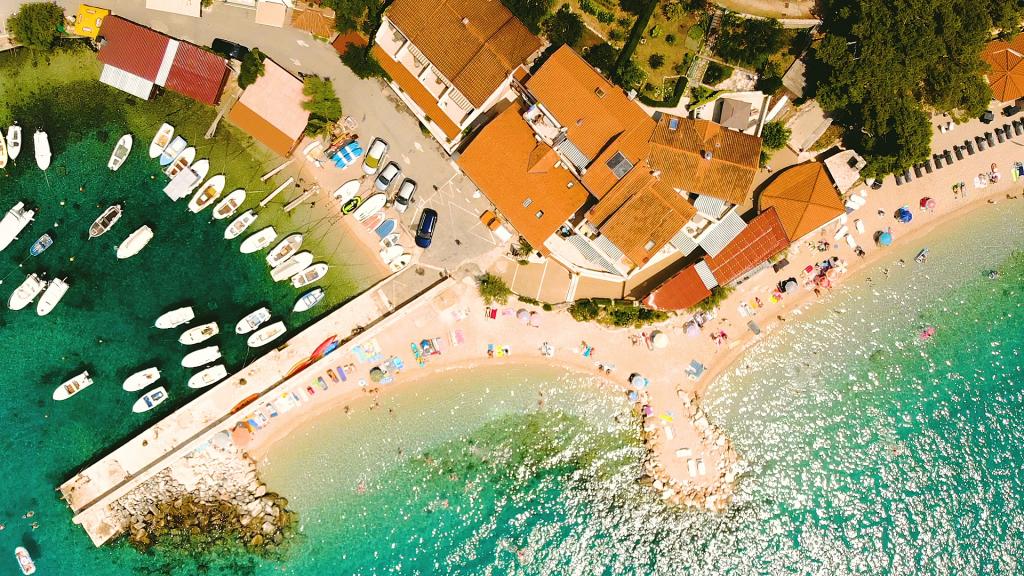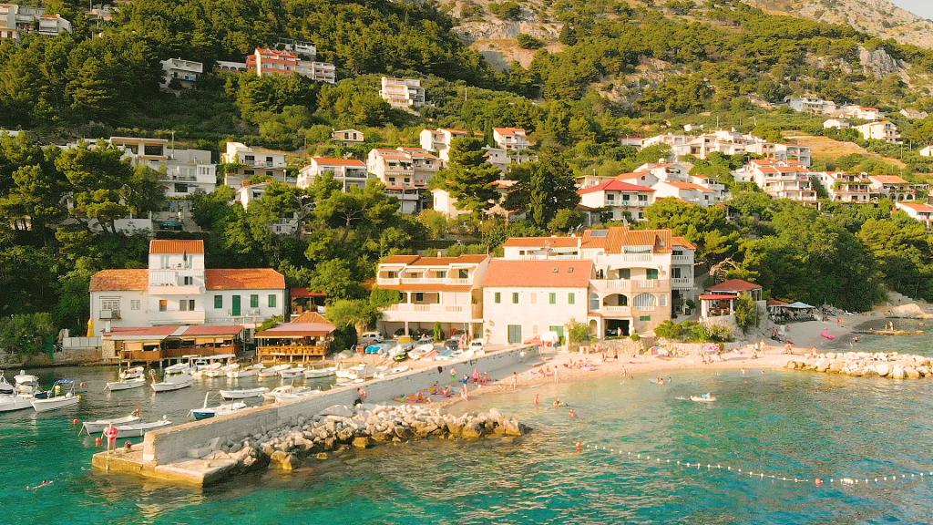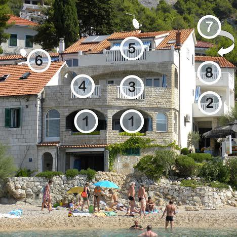 Villa Porat Apartmány se nacházejí v Pisaku, malém turistickém místě nedaleko Brela a Omiše, dům se nachází v první řadě u moře a na krásných oblázkových plážích. Třípodlažní dům má 8 bytů různých velikostí, všechny apartmány mají velké terasy s výhledem na moře. Dům má vlastní parkoviště pro vaše auta.