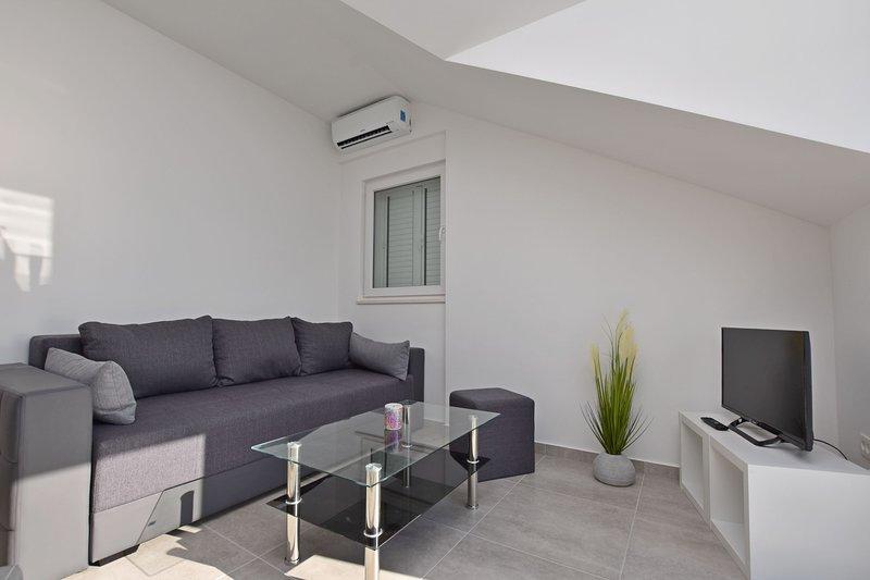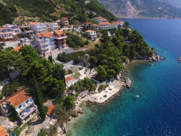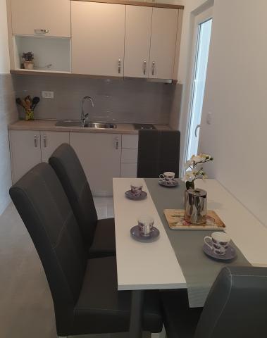 Dům se nachází v první řadě od moře 50m. V domě je 5 bytů v levém křídle budovy a 3 byty v pravém křídle budovy.Každý byt má jedno parkovací stání. Objekt se nachází ve velmi klidném prostředí, které je ideální pro rodinnou dovolenou.