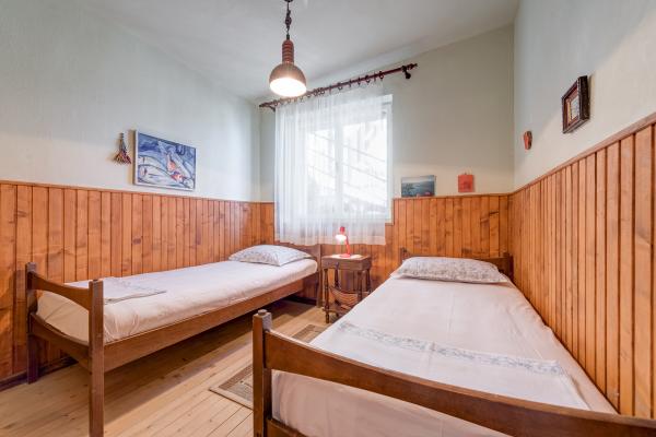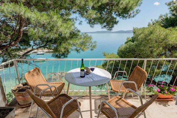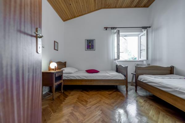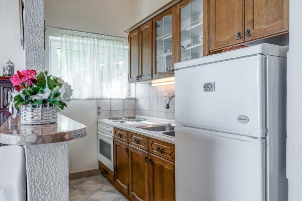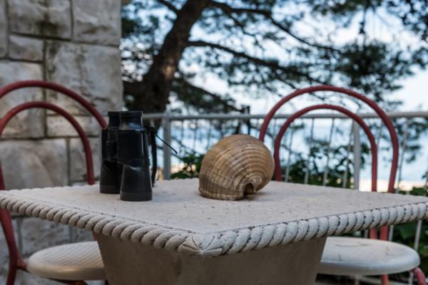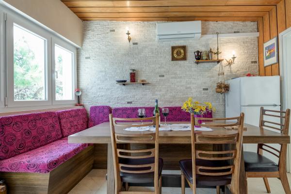 První apartmán byl navržen jako rustikální dalmatské vile s veškerým komfortem a krásnou zahradou a terasou ve stínu borovic. Druhý apartmán je moderní a novější, větší typ hotel. Jeden z pokojů má vlastní koupelnu. Nemovitost se nachází 5 metrů od moře a písečné pláže. Restaurace, kavárna a obchod jsou blízko