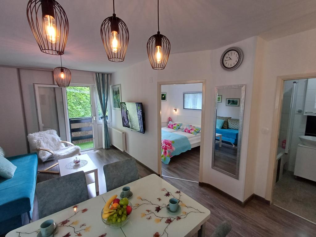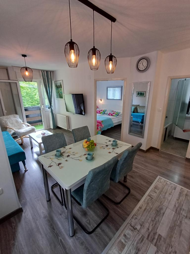 Apartmány se nacházejí v Mukinje, malé rezidenční čtvrti s veškerým potřebným vybavením. Vchod do Ud 2 je vzdálen 15 minut snadné chůze. Jsou 250 metrů od lyžařského vleku a sjezdovky. Nacházejí se v obytném domě v přízemí (pouze 5 schodů). Mají společné vchody a nedávno prošly kompletní rekonstrukcí. sestávají ze dvou jednotek. Studio apartmány pro dvě osoby a apartmány s jednou ložnicí a balkonem pro 4 osoby. je možné pronajmout obě jednotky dohromady a získat tak luxusní byt se dvěma ložnicemi, kuchyní, dvěma koupelnami a soukromým balkonem ideální pro rodinné vyžití na Plitvických jezerech.