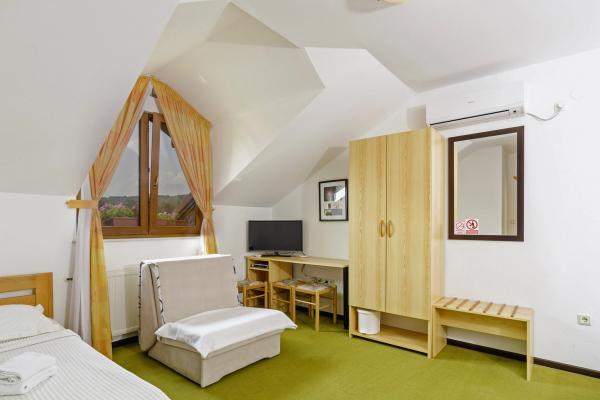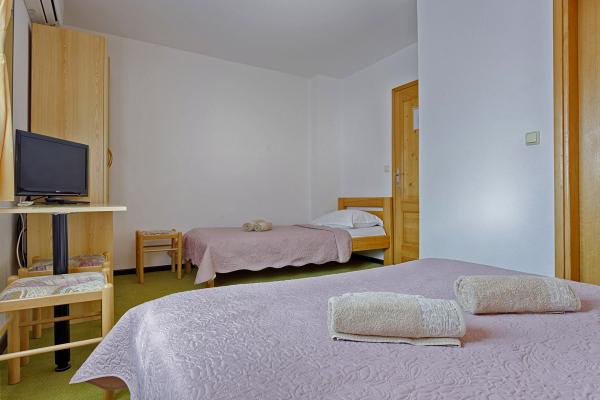 Přečtěte si více Ubytovací jednotkyDětská postýlka je k dispozici na vyžádání a za poplatek 16,00 EUR / noc. Domácí zvířata jsou na vyžádání v ekonomických pokojích a jsou účtovány ve 14,00 euro / noc. Snídaně není zahrnuta v ceně, příplatek za osobu je 9, 00 euro / 1 noc, bufet, podává se v restauraci od 7:00 do 9:00. Přihlášení je od 14:00 do 18:00, takže pokud jste pozdě, kontaktujte nás na telefonních číslech. Odjezd při odjezdu je do 10:00. Rezervace je možná e-mailem, stejně jako potvrzení rezervace. Platba je v hotovosti na místě.