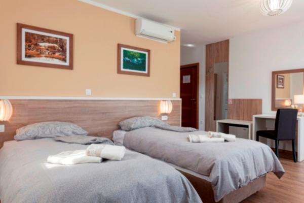 Turistické centrum Marko se nachází 12 km severně od centrální části národního parku Plitvická jezera, na silnici D1 v Oštarski Stanovi. Na tomto klidném místě, bohatém na krásnou krajinu v zachovalé přírodě, existují různé možnosti pro rekreaci, volný čas a odpočinek. Restaurace nabízí bohatou gastronomickou nabídku, kterou servírujeme v příjemném prostředí teras s 50 místy nebo klimatizací s kapacitou 80 míst. Z těžké cesty můžete odpočívat v našich pokojích s celkovým počtem 28. Všechny pokoje mají koupelnu se sprchou, TV / SAT, bezplatné wifi, parkoviště, klimatizace, standardní pokoje s minibarem. Zařízení nabízí také různé rekreační možnosti, jako je venkovní sezónní bazén, adrenalinový park naproti silnici (paintball, lukostřelba, airsoft, zipline), cyklistické trasy s půjčovnou kol, pěší stezky, dětské hřiště a velké parkoviště. V ceně pokoje je bazén.