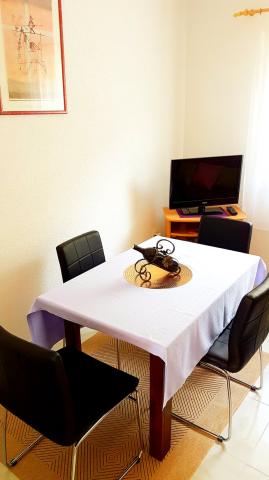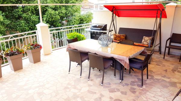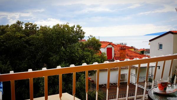 Kompletně zrekonstruovaný a moderně vybavený apartmán, který se nachází v prvním patře. Klimatizovaný apartmán má dvě ložnice s terasou a výhledem na moře, kuchyň a obývací pokoj. Vzdálenost od pláže je cca 100 metrů a 200 metrů od centra. Hosté mají přístup k bezdrátové připojení k internetu a televizi. Je také k dispozici, a využít terasu s grilem. Hosté budou moci parkování a cena zahrnuje daň z pobytu.