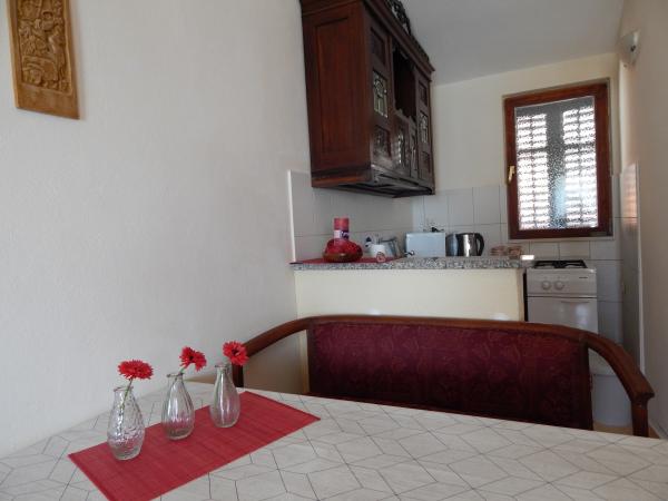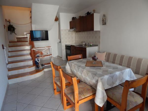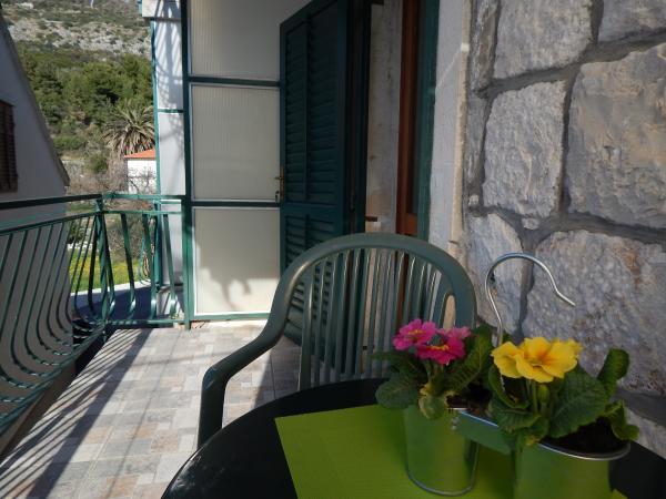 Kombinace tradice a moderní s výhledem na moře, nabízíme dva apartmány, v nichž zbytek dopravní zácpy a stresu oprávněné. Za prvé řadě k moři v krásné zátoce s velkým pláži s dostatkem dělat, která se nachází 10 m od apartmánu. Velký byt A5 má dvě patra, s kuchyní a obývacím pokojem v přízemí a pokoje v prvním patře a balkon s výhledem na působivých pláží, ostrov Hvar je místo, kde můžete vidět krásný západ slunce. Pokoje jsou umístěny v prvním patře, kde je schodiště, které vede z obývacího pokoje. Jeden pokoj s manželskou postelí a samostatným lůžkem nebo dítě a balkon. Druhá místnost se skládá z palandy. Mezi pokojem a koupelnou se sprchovým koutem. Další byt Studio 2 je klimatizované studio apartmán s manželskou postelí a jedním pohovkou, která se vztahuje i na manželskou postel. To má kuchyň a kuapatilo se sprchou a balkon s krásným výhledem na moře. Ideální pro čtyřčlennou rodinu.