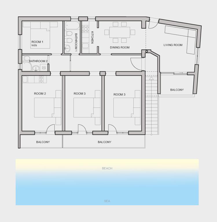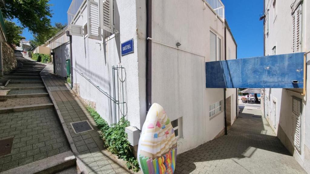 Je to velmi blízko pláže. Krátká, maximálně 2 minuty chůze. Klidné prostředí. Nádherný výhled na moře. Hostitelé jsou velmi laskaví a ochotní lidé. Ubytování má perfektně vybavené, čisté pokoje, koupelny a kuchyň s kuchyňským koutem. Ideální pro více rodin. Rádi se vrátíme.