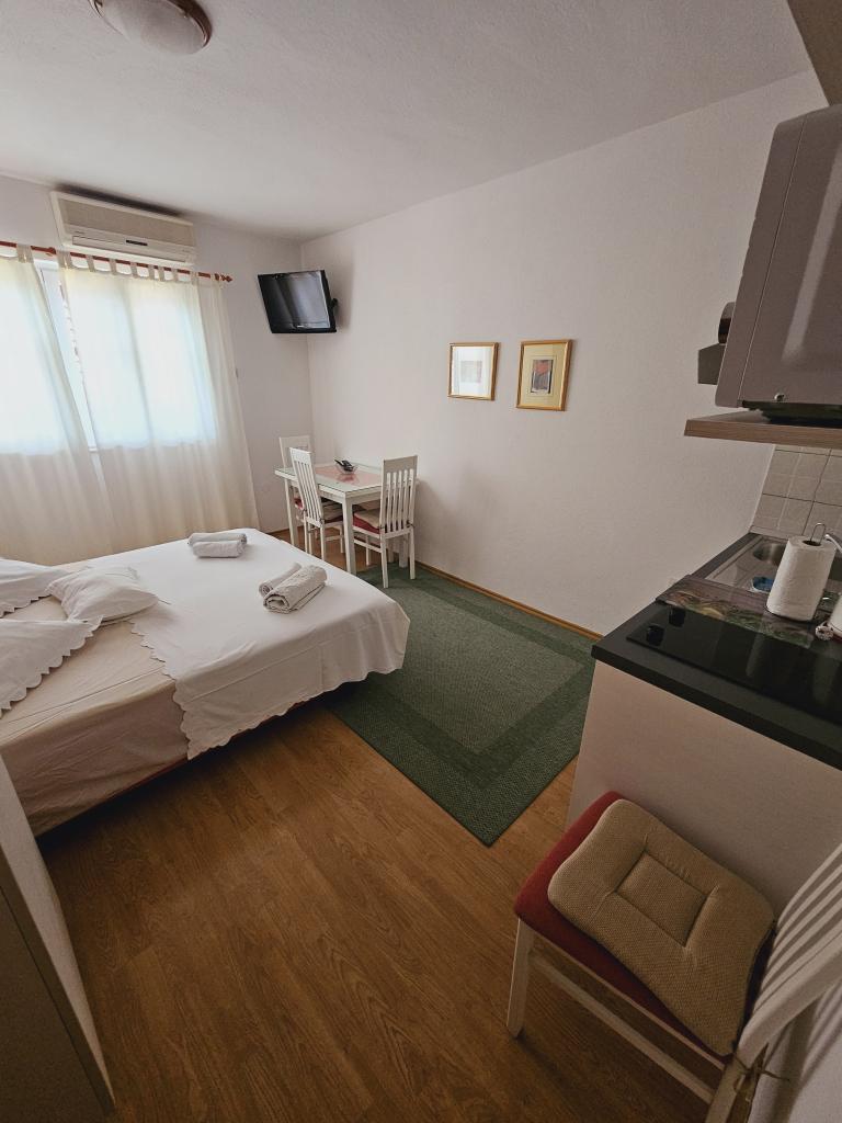 Ubytování bylo naprosto úžasné. Doporučuji majitelům natočit video o ubytování, protože ve skutečnosti ubytování vypadalo ještě lépe než na fotkách. Pokoje byly klimatizované a měly i stropní ventilátor, všechno bylo krásně čisté, uklizené. Po týdnu jsme dostali extra čisté ručníky, majitelé byli úžasní, ochotní, pomohli s obsluhou našeho auta, které jsme nechali na dálnici. Určitě doporučuji a schody na pláž nám nevadily. Brala jsem to jako trénink. Spousta malých pláží, večer živo, ale i klid, obchody, blízko Makarské s většími obchody. Za mě vynikající lokalita. Byli jsme zde s rodinou se třemi dětmi a s dědečkem. Dětem jsme pouštěli pohádky v našem jazyce na Netflixu, apartmán měl dvě kuchyňky a hlavně dvě toalety, což bylo skvělé.