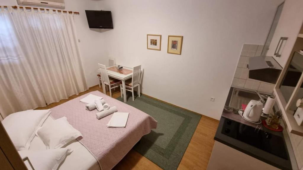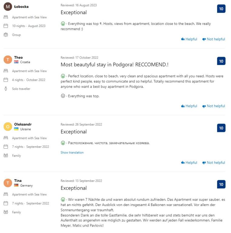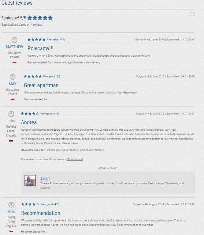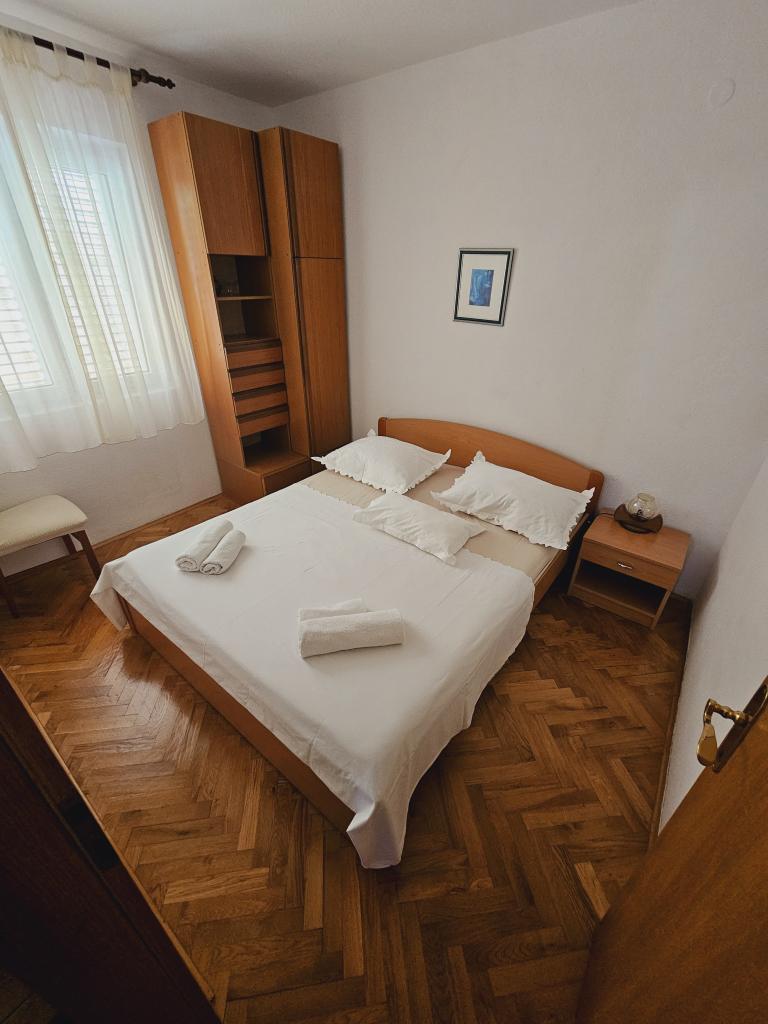 Tento tradičně zařízený apartmán v rodinném domě se nachází v klidné části Podgory, pouhých pět minut příjemné chůze od centra a 50 m od pláže. Tento klimatizovaný apartmán se 4 pohodlnými ložnicemi, 2 koupelnami a 2 kuchyněmi, parkováním pro vaše 2 auta zdarma a nabízí veškeré vybavení, díky kterému bude vaše letní dovolená dokonalá. Spolu s ubytováním získáte také všechny potřebné informace a služby, které potřebujete pro co nejlepší dovolenou v našem krásném městě.