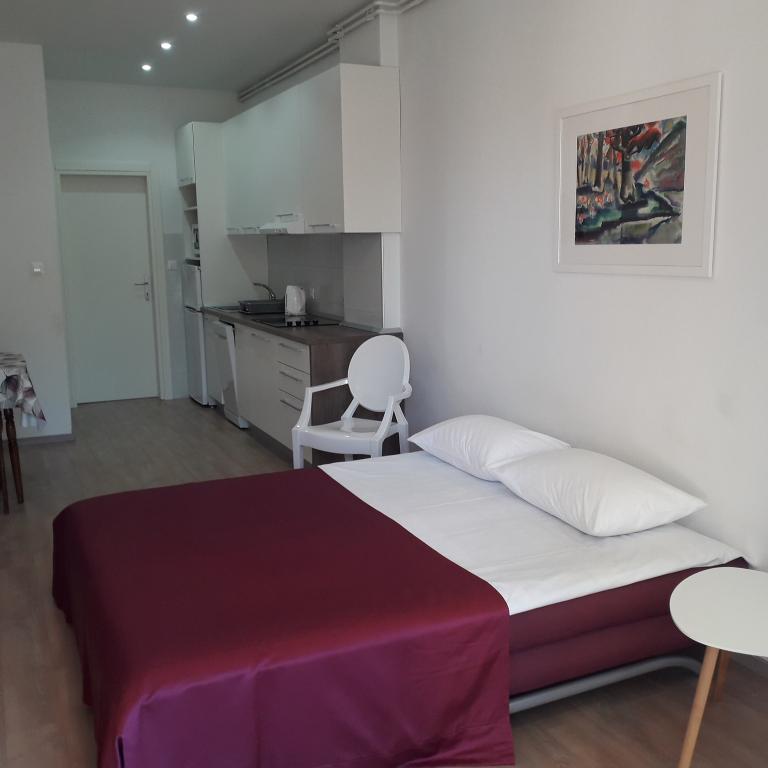 Byt je moderní a velmi pěkně vybavený, má vše, co potřebujete pro příjemný pobyt. Prostorný balkon s krásným výhledem na moře, které je velmi blízko. Hosteska je příjemná a vždy vám k službám. Něco takového jsme dlouho hledali a už teď víme, kde strávíme léto příští léto. Doporučení všem.