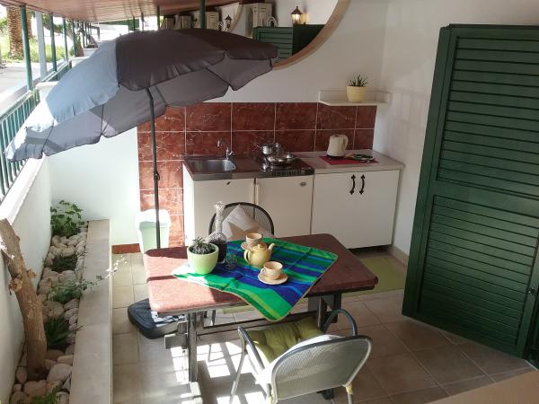Apartmány se nachází v druhé řadě od moře, nad hotelu Minerva.