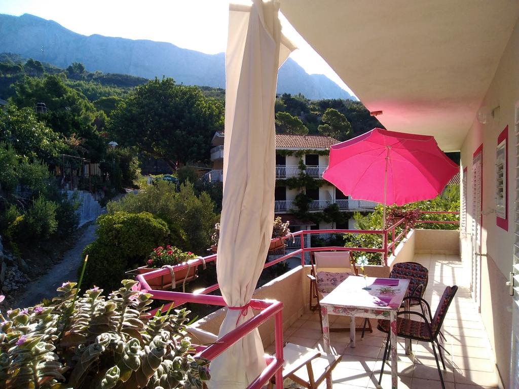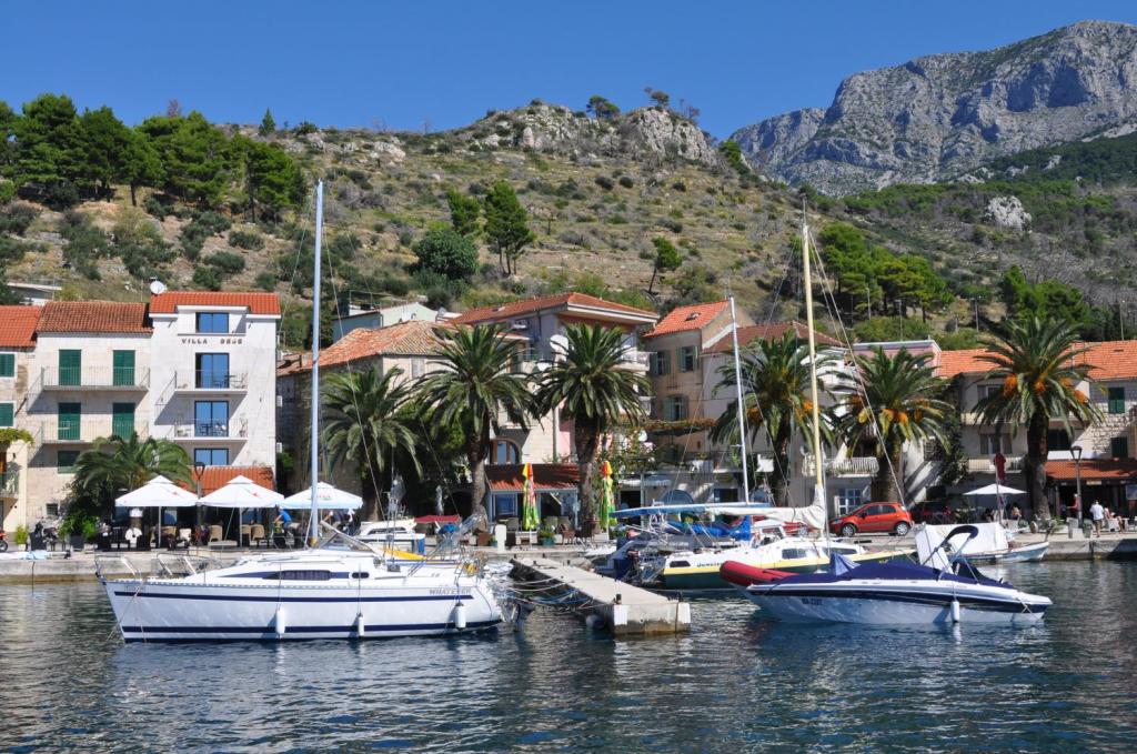 Nově zařízený, pohodlný apartmán se 3 ložnicemi, 2 koupelnami, kuchyní a velkým obývacím pokojem s výhledem na moře, (celkem 100 m²) balkonem, . WI FI, TV sat. Klimatizace, Parkování. Byt se nachází ve 2. patře rodinného domu s krásným výhledem na moře a ostrovy Hvar a Brač na jedné straně a na pohoří Biokovo na straně druhé.