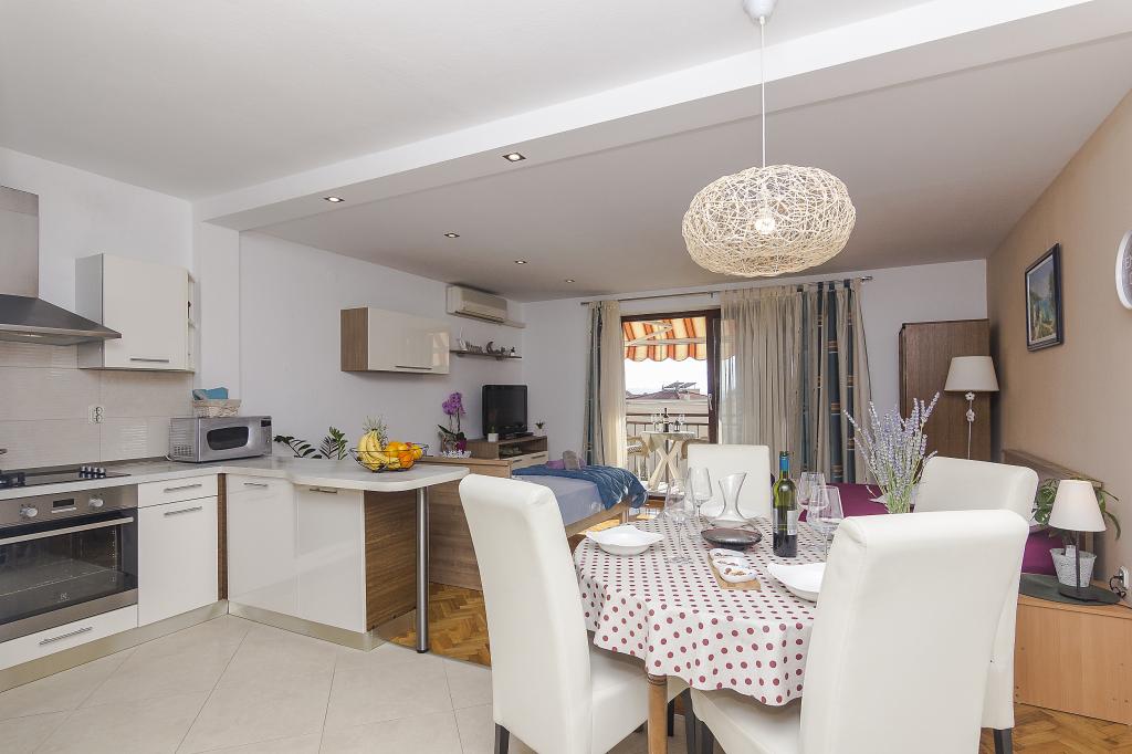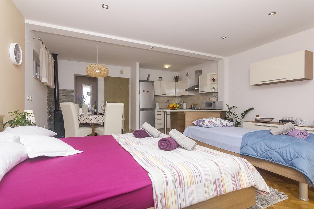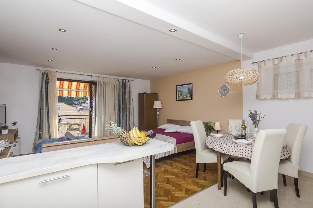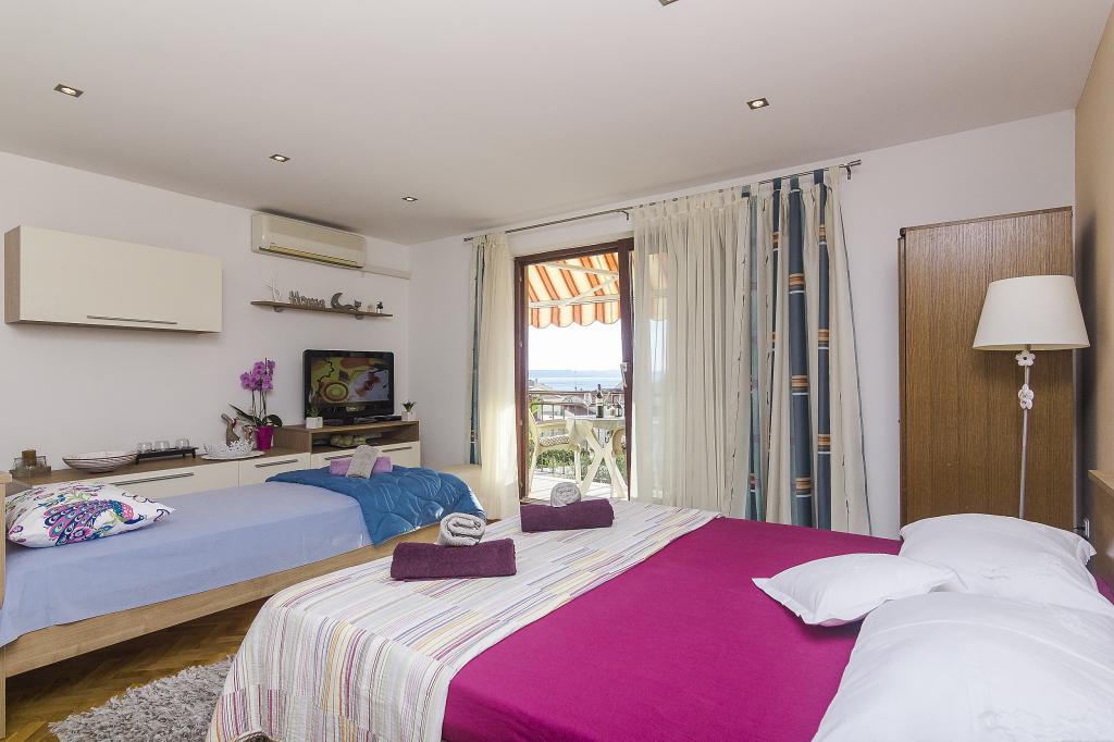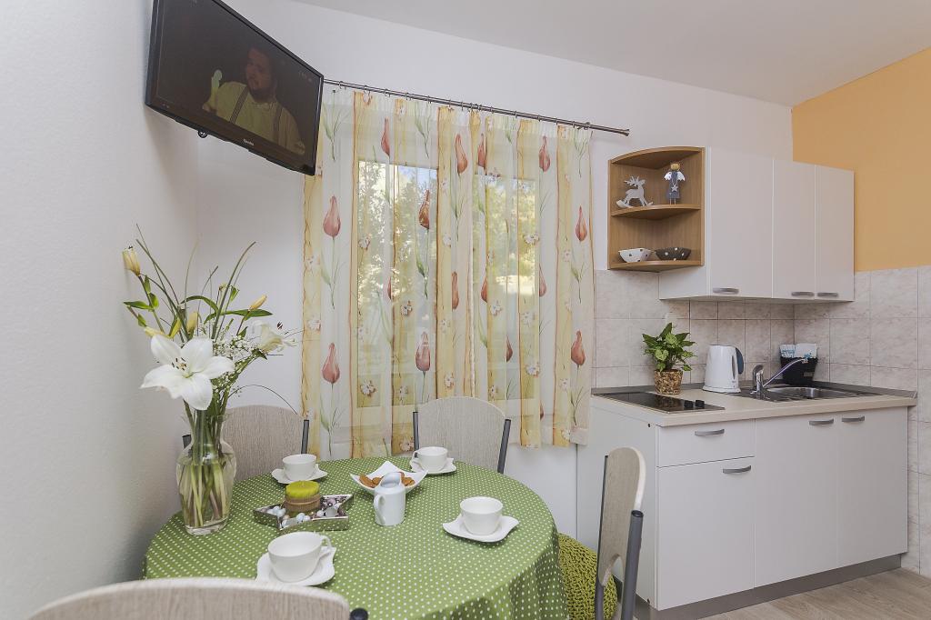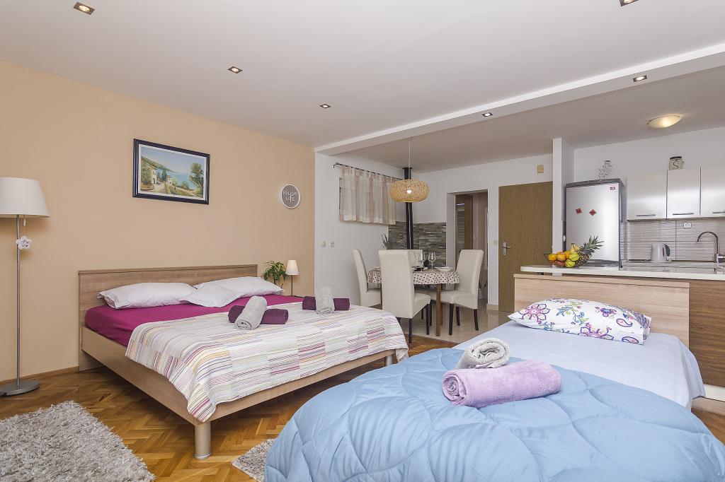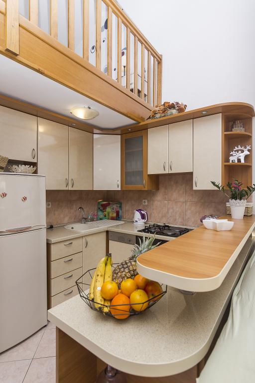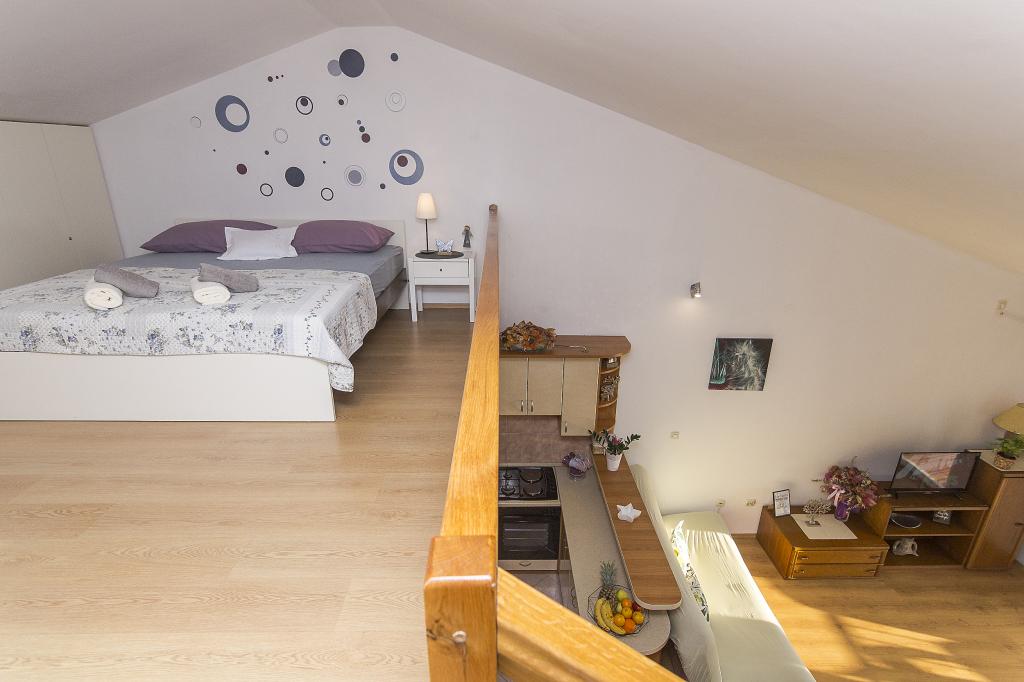 Apartmány se nachází v klidné části Podgory, v ulici Značka Marulica 7. Výhled z bytu nabízí na Jaderské moře a horského svahu. Dobře vybavená a klimatizrani apartmány jsou jen 80 metrů od centra města a všechny ostatní zařízení. Ve dvoře za domem je gril, který mohou hosté využívat. Hosté parkovací místo.