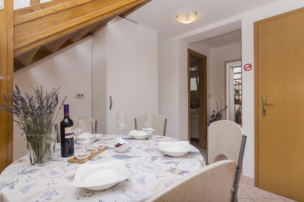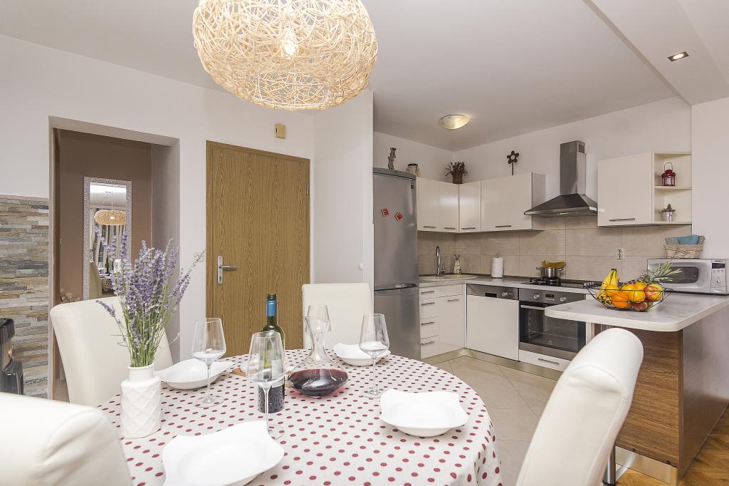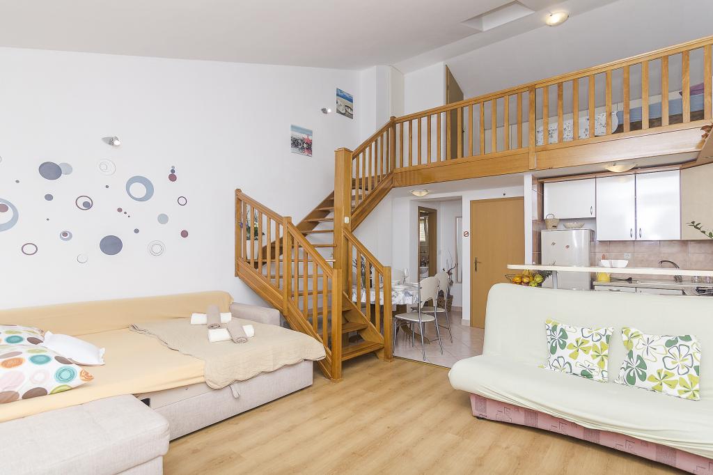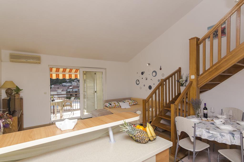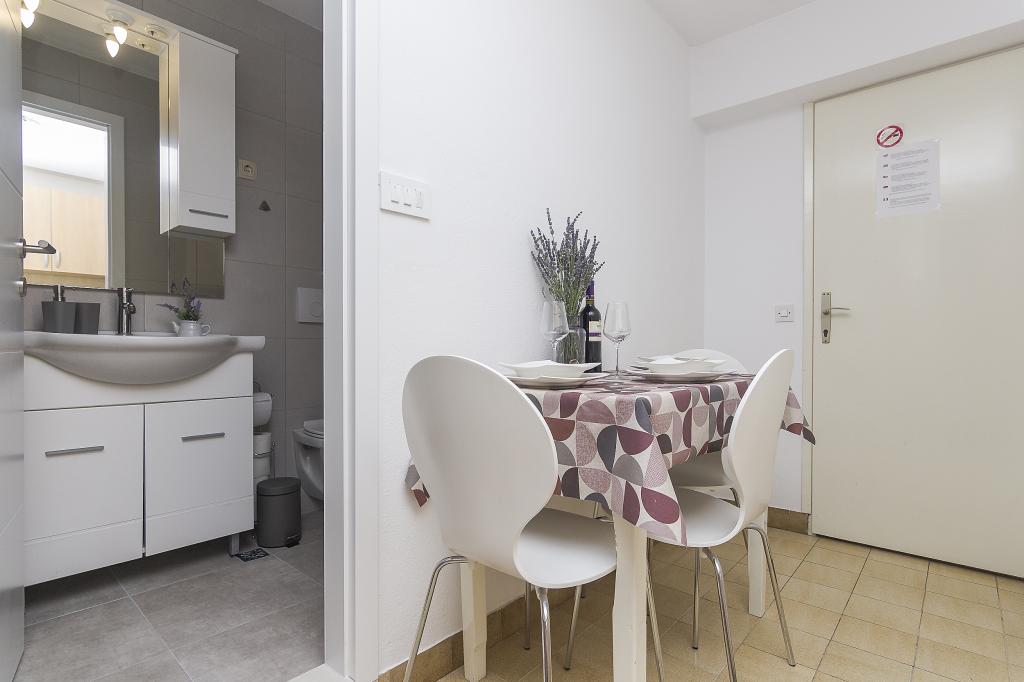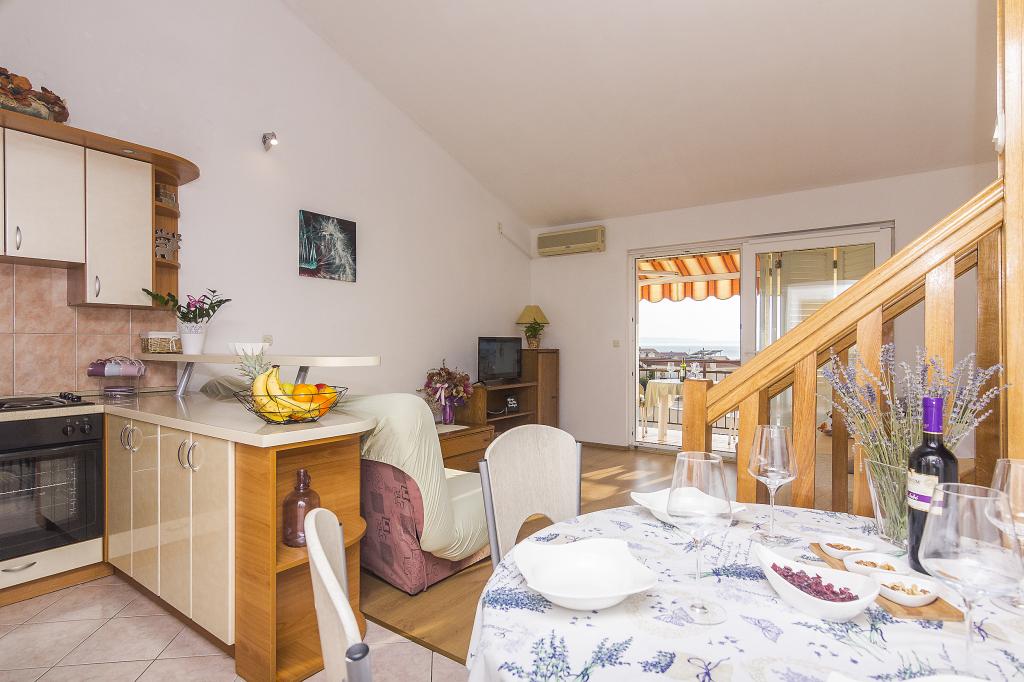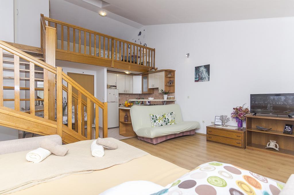 Apartmány se nachází v klidné části Podgory, v ulici Značka Marulica 7. Výhled z bytu nabízí na Jaderské moře a horského svahu. Dobře vybavená a klimatizrani apartmány jsou jen 80 metrů od centra města a všechny ostatní zařízení. Ve dvoře za domem je gril, který mohou hosté využívat. Hosté parkovací místo.