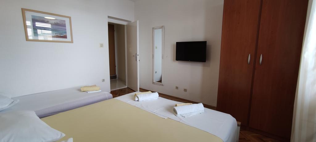 Apartmány Josko-Joseph stromy, jsme v místě Podgora 100m od moře, dům je u moře na pláži je 3-5 minut chůze na břehu moře restaurací barů. Od moře k domu trvá 7-10 minut chůze, protože dům polohy. Dům od města umístí 10-min Všechny apartmány jsou s výhledem na moře, všechny z nich mají kuchyň, která je vybavena pro vaření (kuchyň včetně vidličky, lžíce, nože, tekoucí, pánve atd. .. mikrovlnná trouba, rychlovarná konvice) Každý kuchyně je oddělena od místnosti dveří, aby se vůně potravin nedosahuje místnosti. Poznámka. Studio pro dva č. 5 Kuchyně a ložnice v jedné místnosti v domě s terasou k posezení, výhled na moře. Poznámka. Apartmán 2 +2 AP6 nachází ve Starém Podgora v klidném apartmánu se nachází v přízemí vybavené patře, klimatizace, TV, kuchyňka, gril wc pokoj s manželskou postelí v obývacím pokoji rozkládací pohovkou pro dvě osoby dvoře. Domácí obchodovatelné.