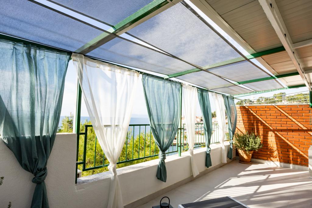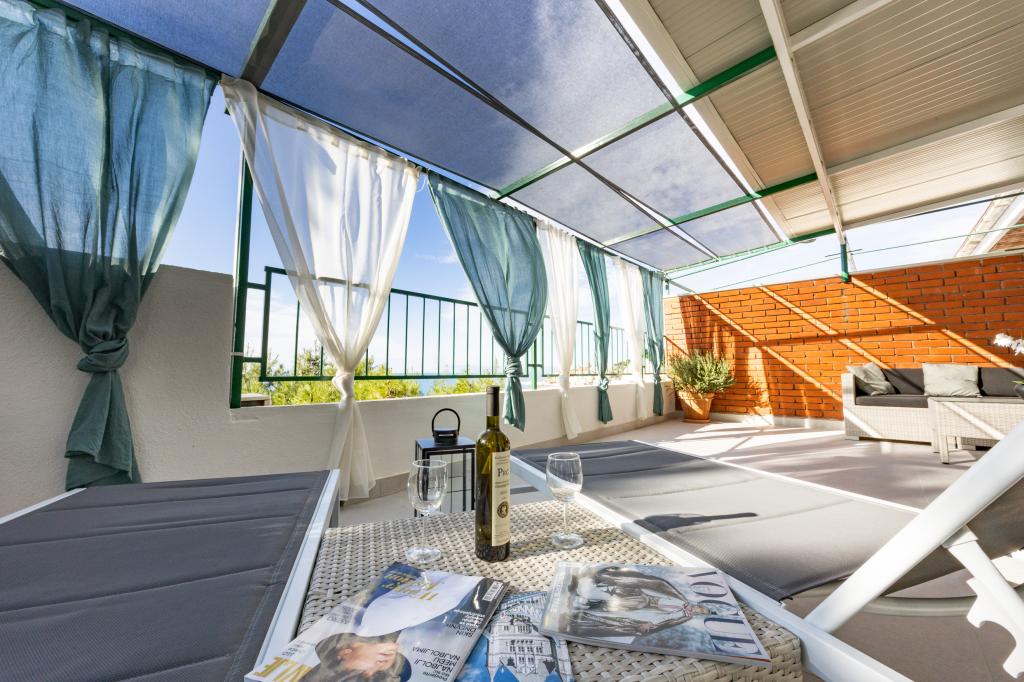 Bydleli jsme v posledním patře v bytě s obrovskou terasou, proto jsme si vybrali tento byt. Skvělá lokalita. Blízko všemu. Byt je velmi dobře vybaven. Výhled z bytu je krásný.