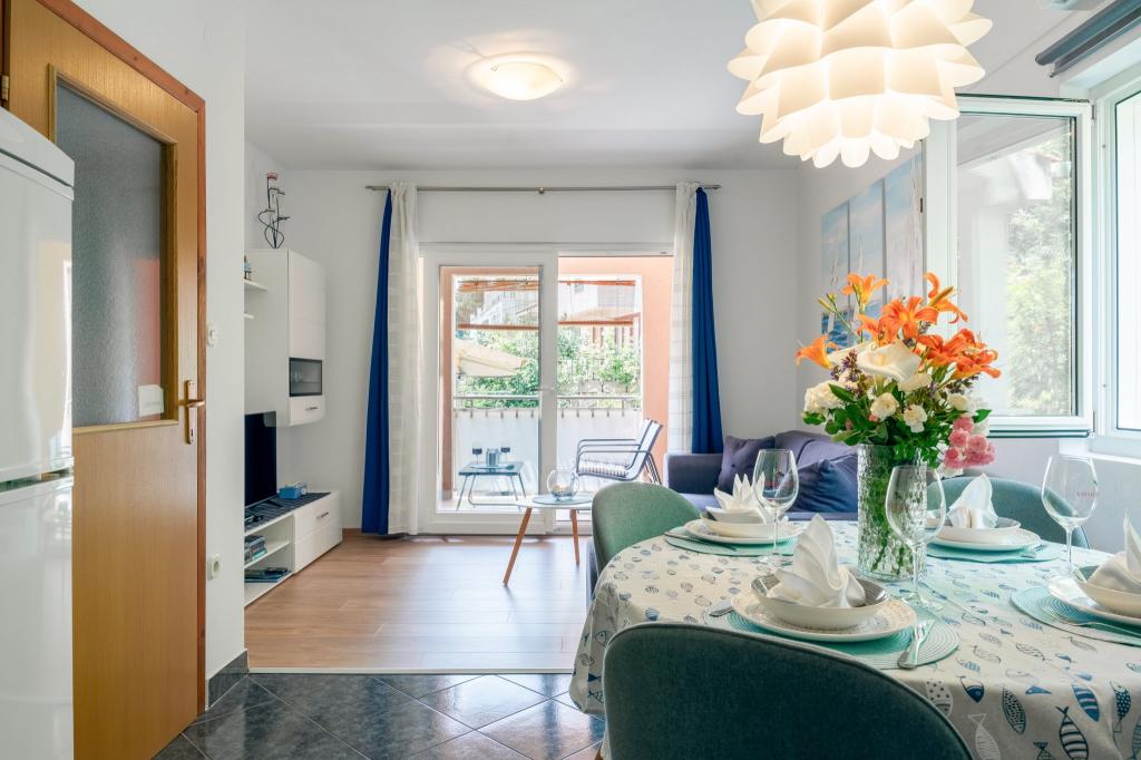 Ubytování krásné, moderní a čisté, hezká velká terasa, majitelka milá, vstřícná, místo je klidné a blízko k moři, obchůdkům a restauracím, pláže jsou nádherné, Podgora se mi moc líbila, určitě doporučuji.