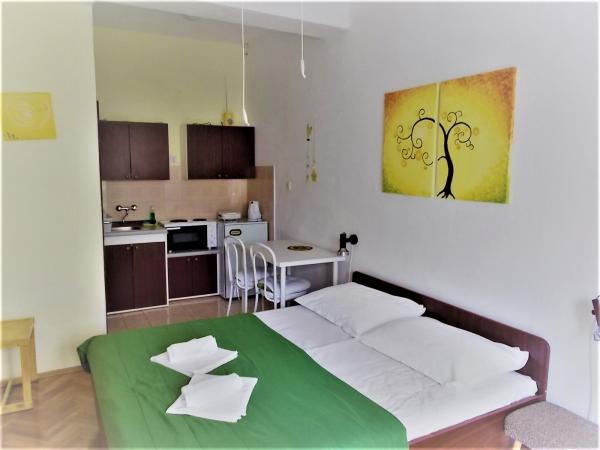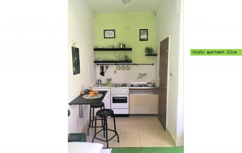 CAPTAINOVÝ DŮM (pronájem celého domu) • Vybavení: plochý SMART TV 32 ", wi-fi, rádio, klimatizace, gril, parkování. • 2 ložnice (3 2 lůžka) • Obývací pokoj (2 lůžka) • Kuchyně • 1 koupelna (sprcha, WC, umyvadlo - vše samostatně) • 2 terasy Tradiční dalmatský kamenný dům se nachází v centru Podgory, v centru událostí v blízkosti restaurací, kaváren a obchodů, a přesto je chráněn před hlukem a zvědavými očima, protože se nachází v klidné ulici. V domě se může ubytovat čtyři až sedm lidí. APARTMÁNY ZÁHRADNÍ DŮM (3 apartmány) Apartmán Orange - 2 2 osoby Studio Lemon - 2 osoby Studio Olive - 2 osoby