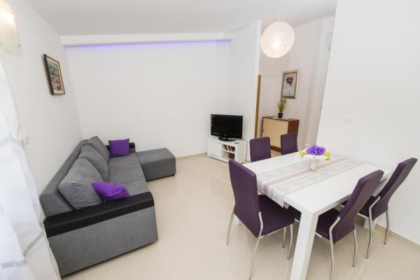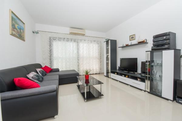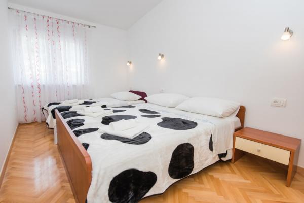 Plně vybavené a moderní apartmány v klidné části Podstrana, který se nachází přímo u moře; V bytě se nachází 30 metrů od pláže. Supermarket a pekárna jsou jen 2 minuty chůze. Lékař a lékárna jsou 20 metrů. K bytu náleží 2 balkony, 2 ložnice a 2 přistýlkami pro čtyři osoby. K dispozici jsou dvě kuchyňky a dva vchody, takže je vhodný pro dvě rodiny.