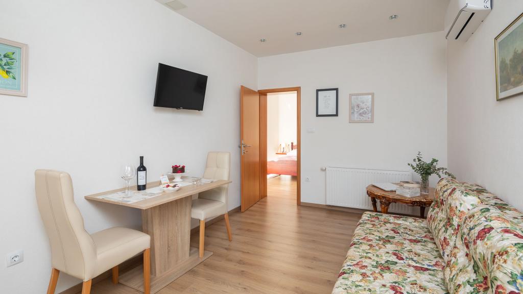 Nabízíme Vám dva krásné, pohodlné, plně vybavené apartmány Luka a Katja s vlastním venkovním bazénem v turistickém městečku Podstrana. Místo je známé svými krásnými plážemi v okolí a je jen 10 km od centra Splitu. Apartmán Katja je zařízen v moderním stylu. Pěkně zařízený apartmán v letních barvách, pohodlná manželská postel, rozkládací pohovka, plně vybavená kuchyň a koupelna. Apartmán Luka je zařízen v rustikálním stylu s detaily typickými pro tento dalmatský region. V apartmánu je také pohodlná manželská postel, rozkládací pohovka, plně vybavená kuchyň a koupelna a terasa s výhledem na bazén. Hosty vítáme domácím likérem, hosté jsou zváni také ochutnat čerstvé ovoce přímo z naší zahrádky. Zahrada s bazénem je nejlepším místem k odpočinku s celou rodinou, protože máme něco pro všechny členy rodiny. K dispozici je stolní fotbal a bazén.