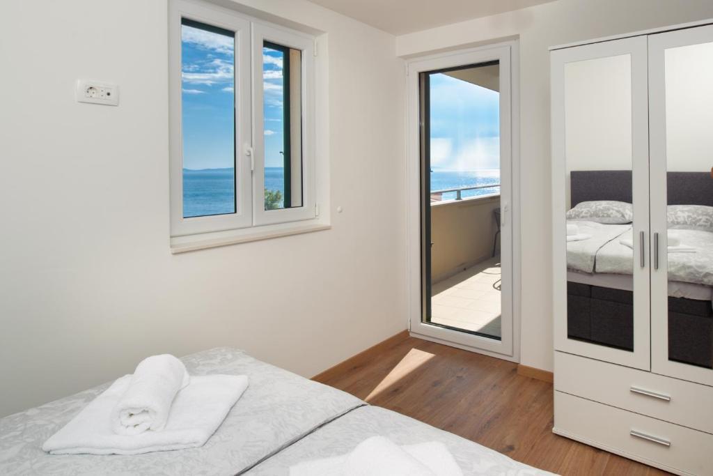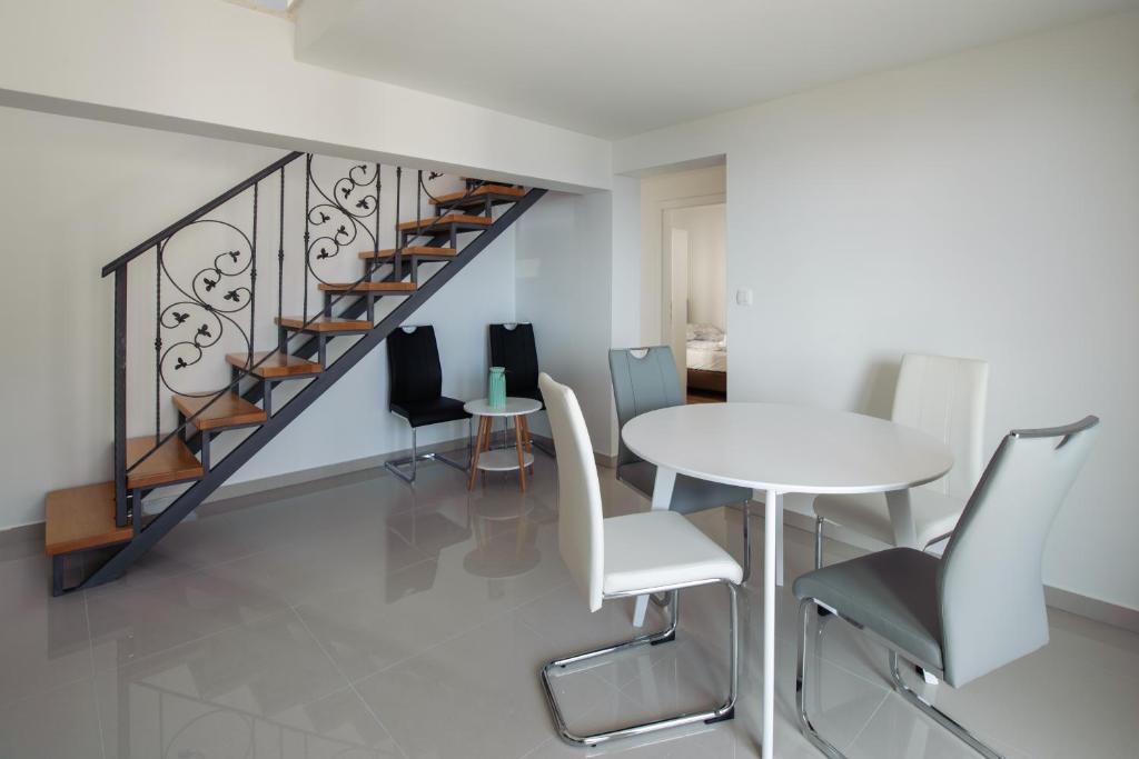 Luxusní dvoupatrový apartmán v blízkosti pláže, s výhledem na moře a terasou. Méně než 5 minut od pláže, hlídané parkoviště v budově.