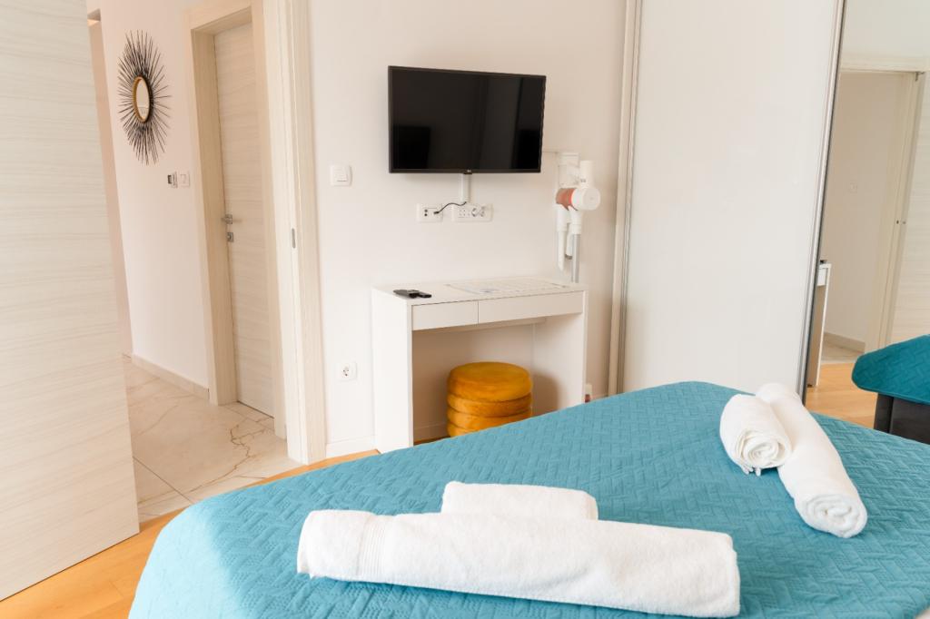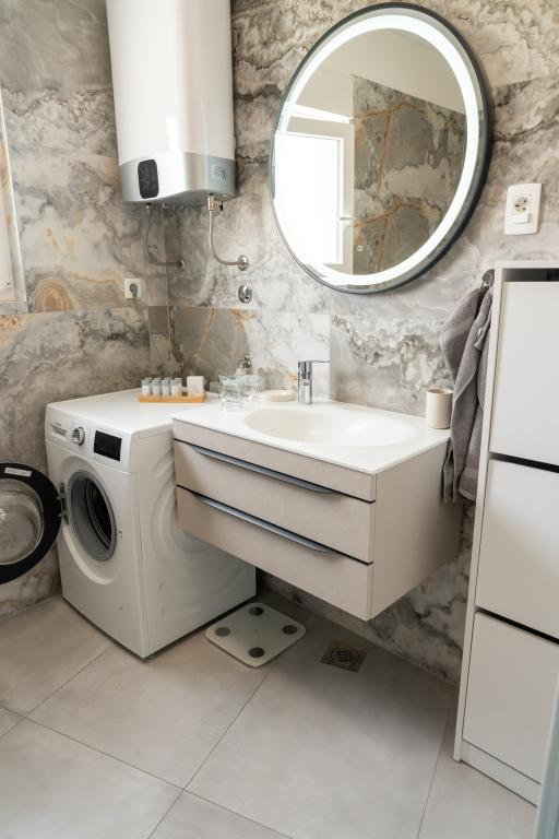 Plně vybavený apartmán na klidném místě, kde vás probudí cvrlikání ptáků s výhledem na horu Perun. Byt je obklopen 2 velkými supermarkety Tommy a 1 minutu chůze od menšího Studenacu. 800 metrů od apartmánu je pláž a promenáda, která se táhne až kolem hotelu Lav, u kterého je skvělá pláž, 15 minut chůze je město Stobreč, kde je velmi oblíbený kemp a pláž s barem a restaurací. 5 minut chůze od apartmánu se můžete vydat na oblíbenou promenádu podél říčky Žrnovnica, která je v horkých dnech spása, i v noci je osvětlená, pokud jste dobrodruh, můžete vyrazit na túru na kopec Perun s turistickými značkami, které jsou 100 metrů od apartmánu. Apartmán je vzdálený 9 km od města Split a 25 km od letiště Split. K bytu náleží bezplatné parkovací místo pro 1 vozidlo. Byt se nachází v srdci Podstrany, takže ke koupání není vůbec nutné vozidlo a v apartmánu je vše, co potřebujete pro delší pobyt, jako je sušička, pračka, myčka a další náležitosti. Bude nám ctí vás hostit.