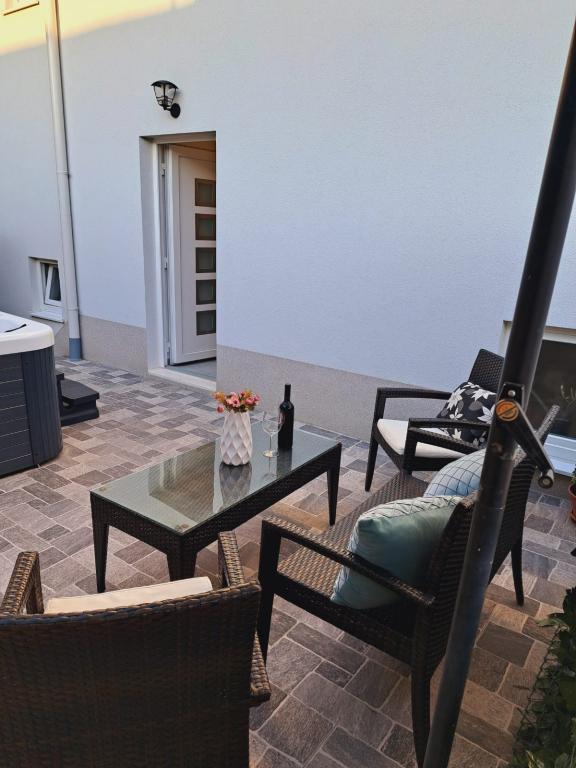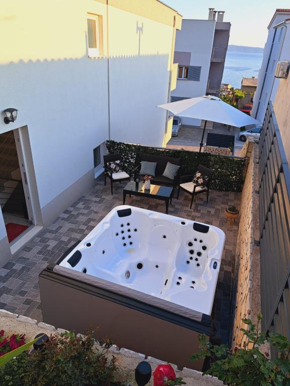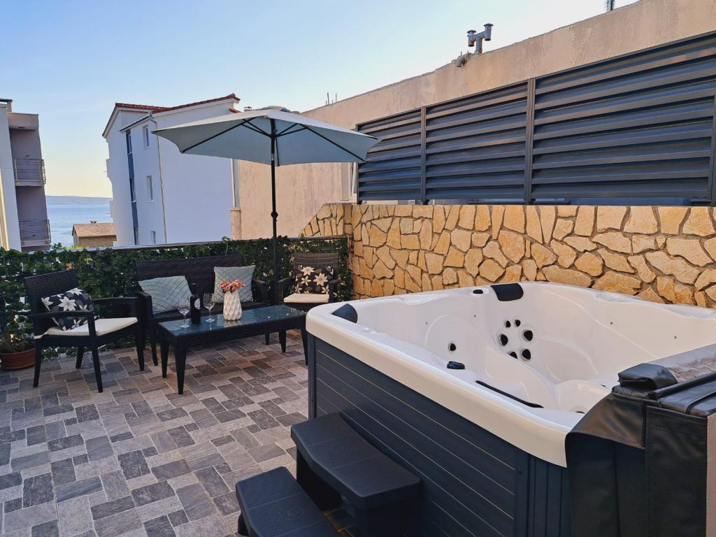 Nový a plně vybavený apartmán se nachází v klidné oblasti s krásným výhledem na moře.Ideální pro vaši klidnou dovolenou s rodinou.Apartmán má vše, co potřebujete, gril, dvě terasy, z nichž jedna má jacuzzi, která mohou využívat pouze hosté apartmánu a dvě parkovací místa. Krásná oblázková pláž je vzdálena deset minut chůze. Jako hostitelé jsme vám k službám 24 hodin denně Doufáme, že si náš apartmán vyberete Vaši dovolenou a těšíme se na Váš příjezd.