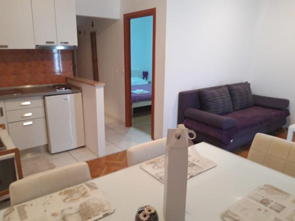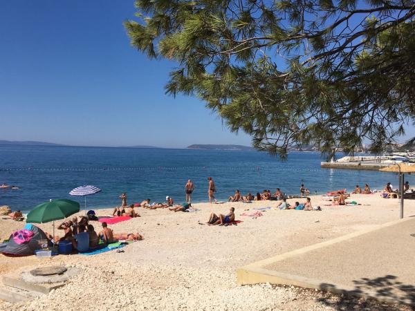 Nově zrekonstruovaný a pohodlný byt v klidné lokalitě, která se nachází pět minut chůze od moře, krásné pláže a pobřežní promenády. V blízkosti jsou obchody, restaurace, pizzerie, pekárny, dětská hřiště, golfové hřiště ... Jen pár minut chůze od bytu je luxusní hotel, který nabízí možnost využití sportovních zařízení, jako je tenis, plážový volejbal, basketbal a využití bazénu a wellness. Byt se nachází deset minut válcování od centra Splitu, jehož střed je starý Diokleciánův palác ze 4. století (pod ochranou UNESCO), který je ve světě unikátní. Pouhých dvacet minut jízdy od bytu si můžete užít nádherný požitek z rafting na řece Cetina, v blízkosti starého pirátského města Omiše. Byt se skládá z: kuchyně, jídelna, obývací pokoj s balkonem s výhledem na moře, ložnice, předsíně a koupelny. Byt má vlastní parkoviště.