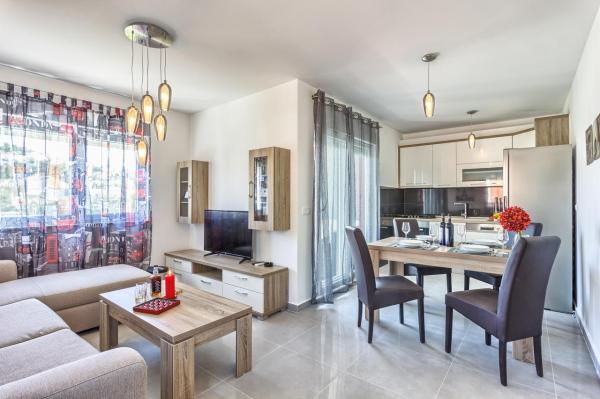 Byt je nádherný, vybavený vším možným obsahem, ale chybí mu výhled na moře. Pláž, která je čistá a kde se dá koupat, není moc blízko, ale nebyl pro nás problém projít. Majitelka Nikolina je milá, vstřícná a vždy k dispozici, všechna chvála!