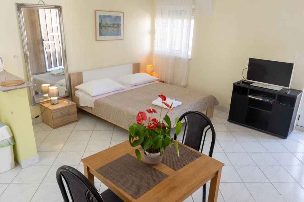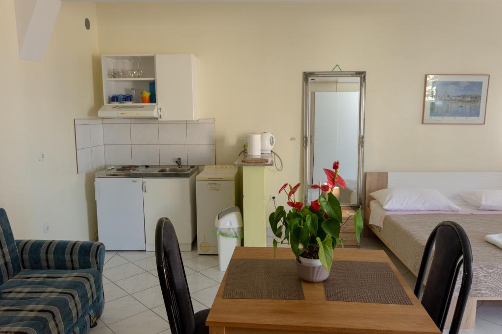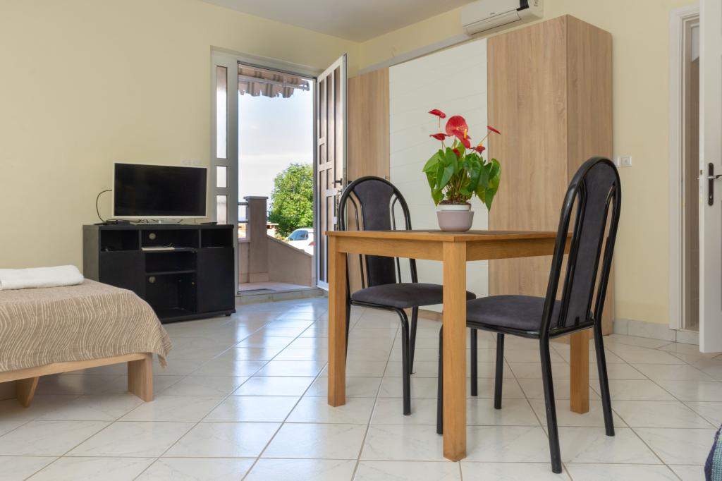 Pobytová taxa je v ceně.Vynikající studio s pěknou terasou, kde si můžete pít kávu s krásným výhledem na moře. Hostitelé jsou velmi přátelští a vstřícní. Všechna doporučení pro byt.