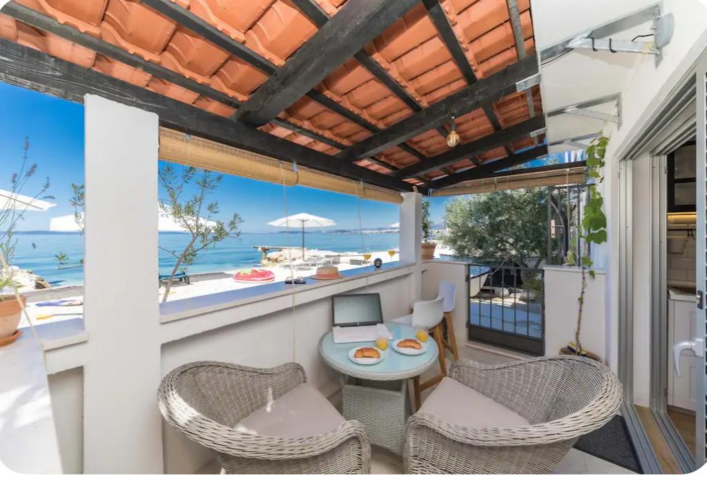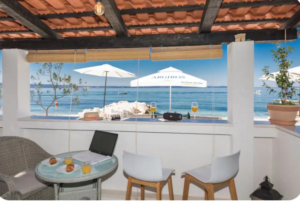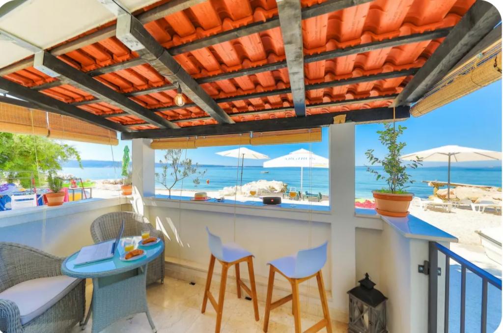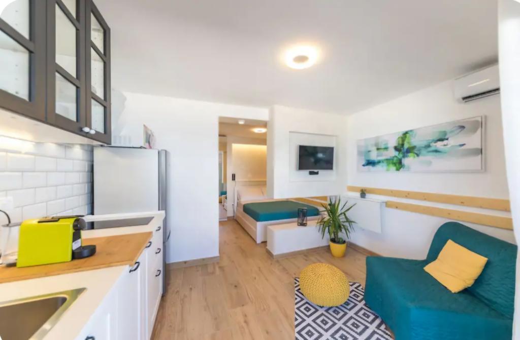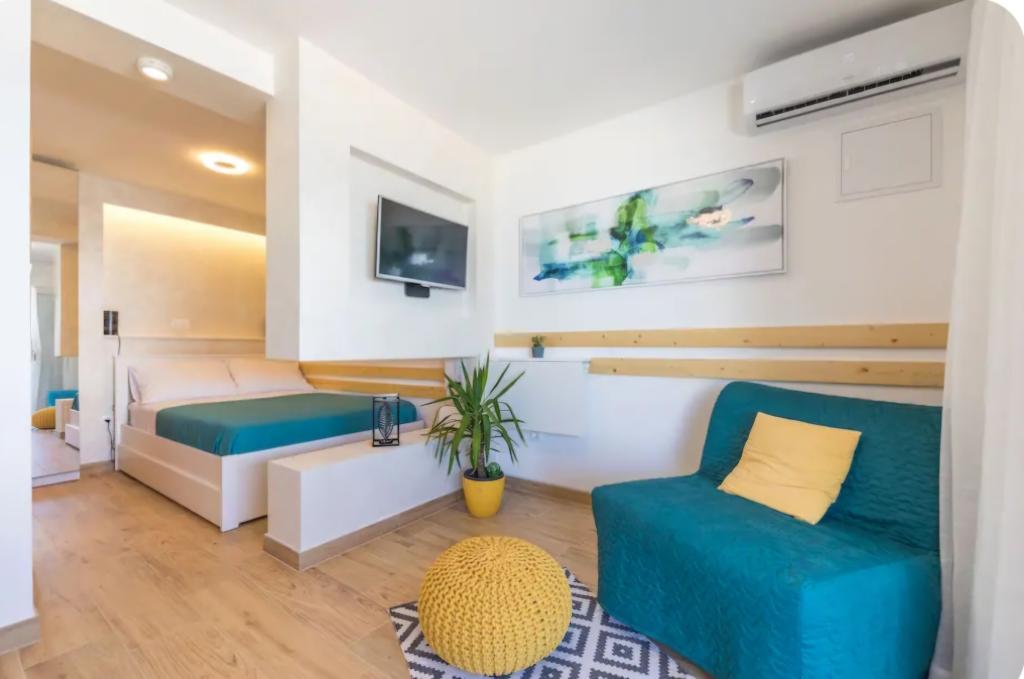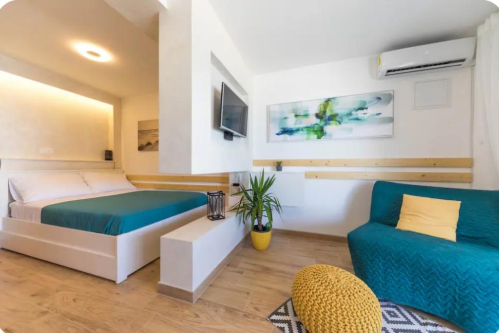 Velmi okouzlující studiový apartmán, 30 metrů od moře. K bytu náleží také soukromé parkoviště. Obývací pokoj v relaxační zahradě je to, co dává bytu vyniknout. V ceně jsou také lehátka a slunečníky.