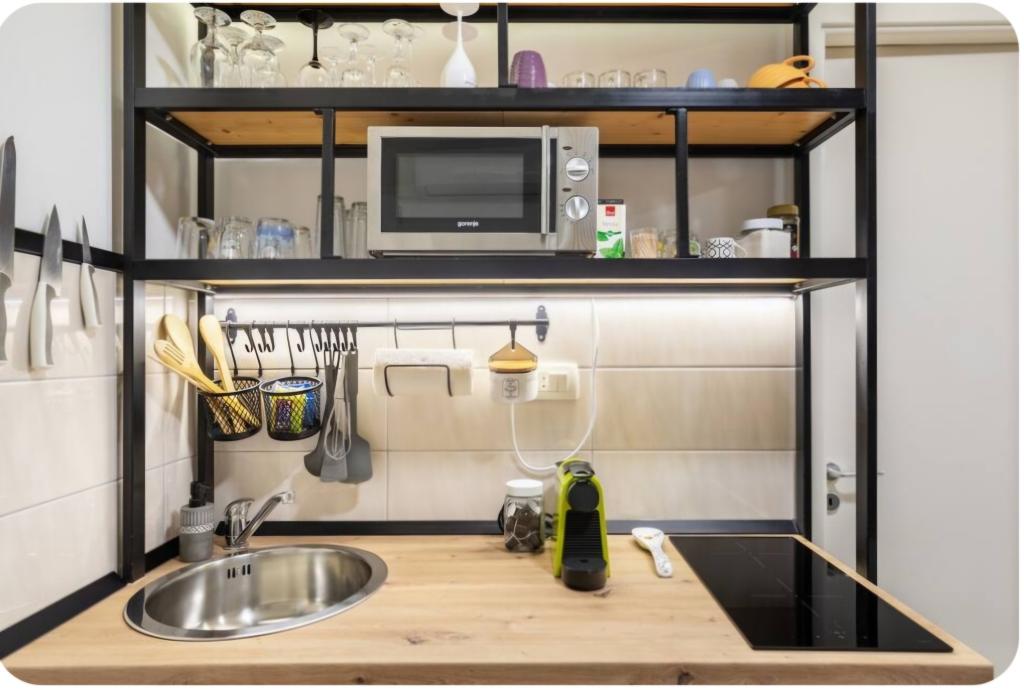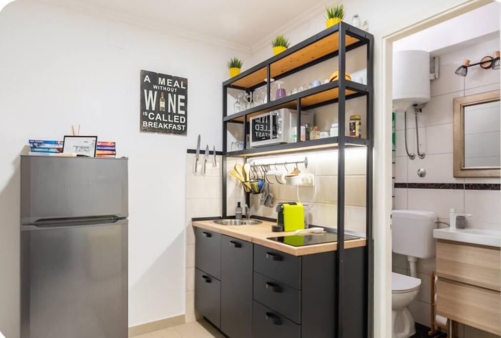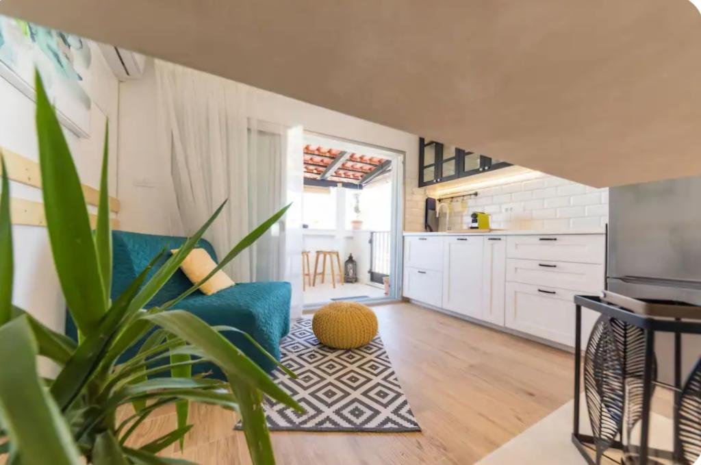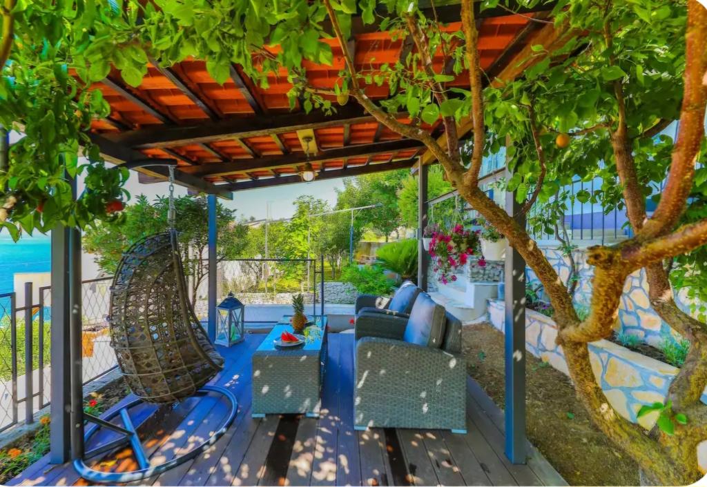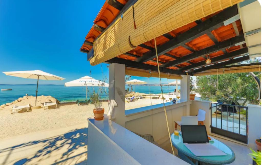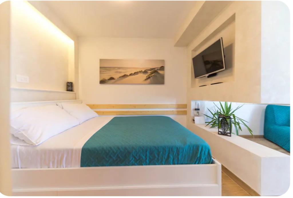 Velmi okouzlující studiový apartmán, 30 metrů od moře. K bytu náleží také soukromé parkoviště. Obývací pokoj v relaxační zahradě je to, co dává bytu vyniknout. V ceně jsou také lehátka a slunečníky.