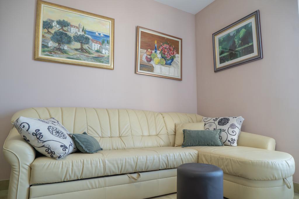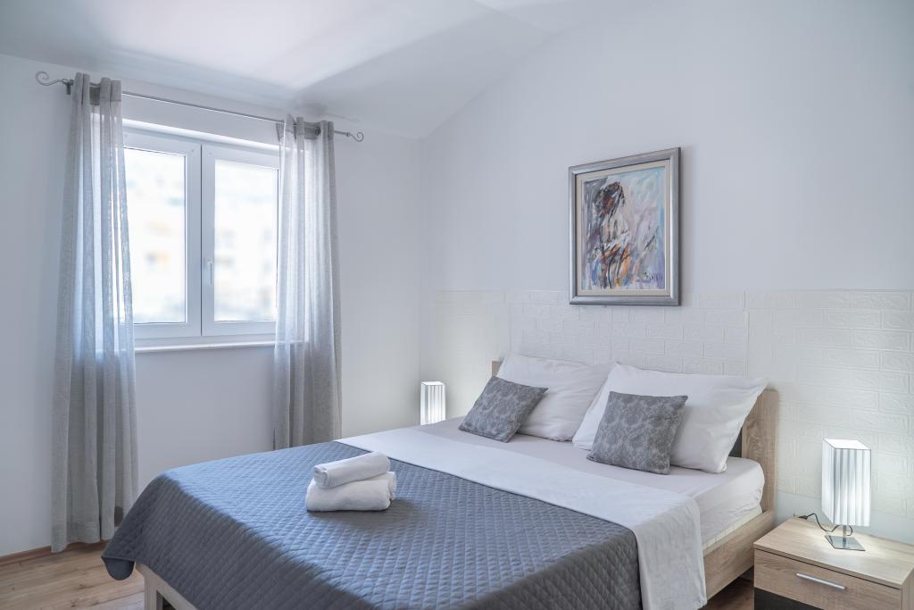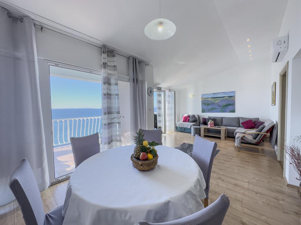 Plně vybavený byt se dvěma ložnicemi, dvěma klimatizacemi, velkým balkonem, jídelnou, kuchyní a prostornou koupelnou. Nachází se ve Sv. Martina Podstrana k moři, s krásným výhledem na ostrovy a město Split. Pláž je oblázková, vhodná pro koupání dětí s velkou promenádou u moře. Je ideální pro rodiny s dětmi, protože silnice není zkřížená. Dvůr je oplocen, kde je parkoviště a gril. V blízkosti jsou obchody, restaurace, pizzerie, kavárny, obchody, lékař, lékárna a zubní ordinace, nedaleko Splitu s kulturními památkami chráněnými UNESCO - Šibenik, Trogir, Solin a Omiš. Apartmán s je velký a pohodlný a má 4 lehátka. Byt je prostorný a pohodlný s velkou terasou a slunečníky s krásným výhledem na moře pouhých 30 metrů od moře, přijďte se přesvědčit. nedaleký tenisový kurt, jezdecký klub, cyklistické stezky, výlety lodí na okolní ostrovy, místní jídlo, čerstvé ryby, měkkýše a další speciality