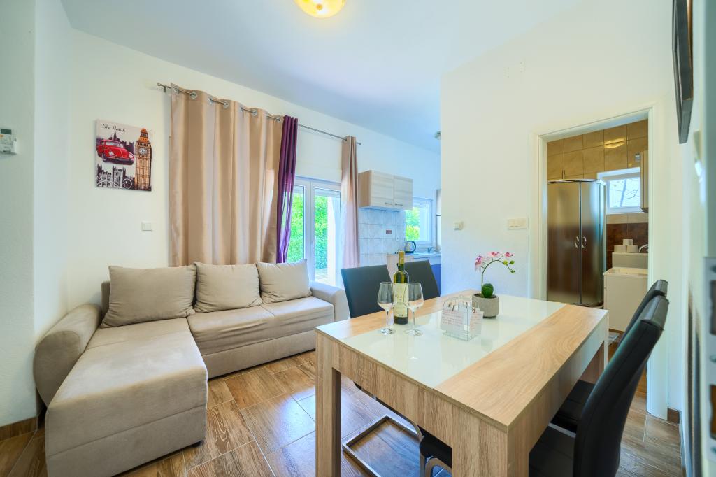 Nové a moderně vybavené apartmány v klidné lokalitě, 200 m od moře. Objekt se nachází 5 minut chůze od 3 oblázkových pláží, kaváren, obchodů, restaurací, lékáren, lékařů a lékáren. Všechny jednotky jsou vybaveny klimatizací, TV, jídelním koutem, koupelnou a terasou. Nový bazén o rozměrech 8x4 m je k dispozici výhradně pro hosty apartmánů.