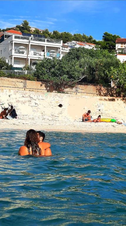 Krásný čistý apartmán, plně vybavený, s terasou, grilem a nádherným výhledem na moře. Na střeše – další terase je ještě krásnější výhled na moře s lehátky, židlemi, grilem a jakuzzi výryvkou. Moře je jen pár kroků od apartmánu, pěkně tyrkysové. Pláž je štěrková, ale dovnitř v moři najdete také bílý písek a mušle. Domácí Ivanka je velmi milá, srdečná, vždy ochotná. Malým i velkým rodinkám doporučuji. Jsme spokojeni, určitě se ještě někdy vrátíme.
