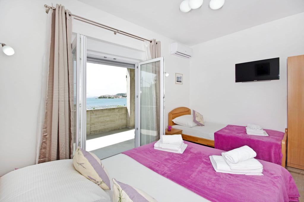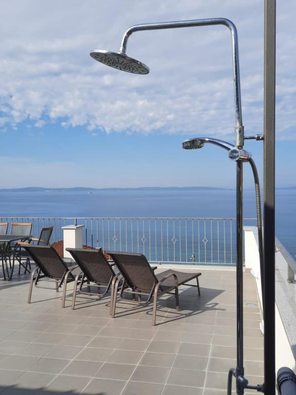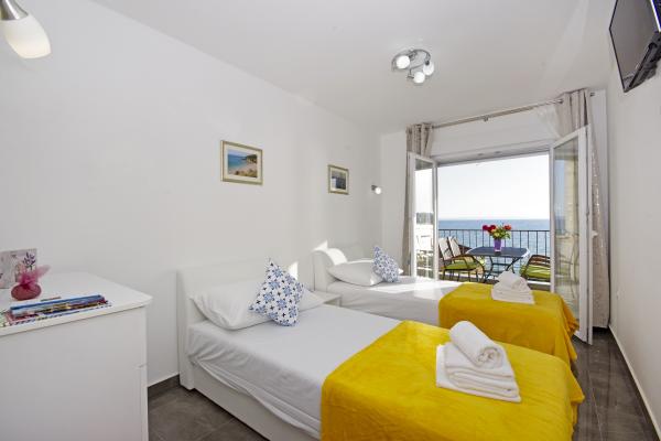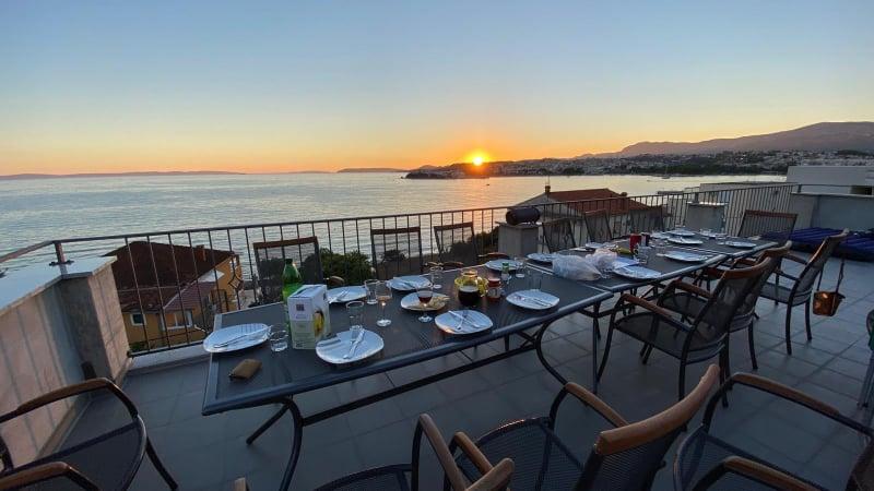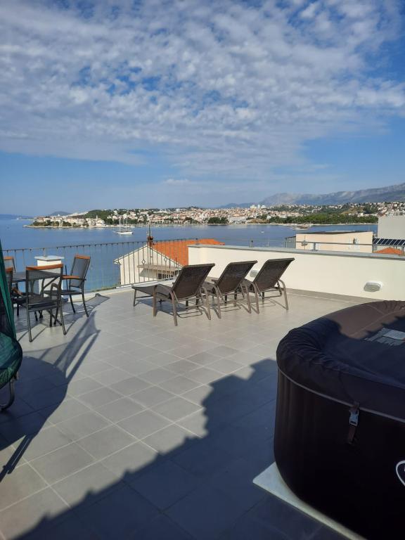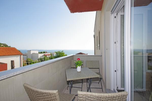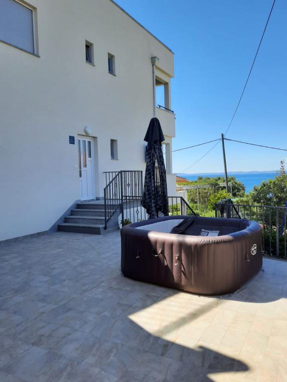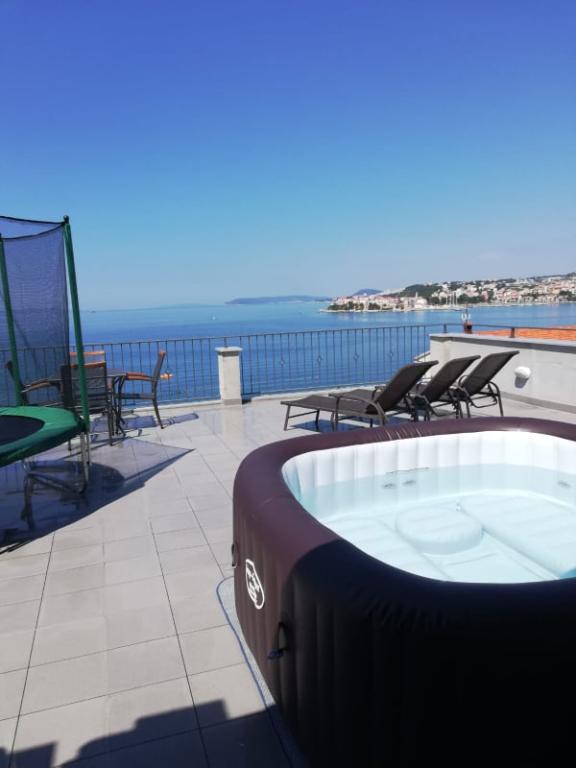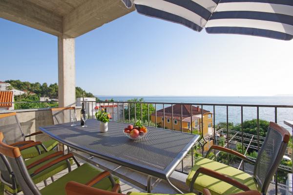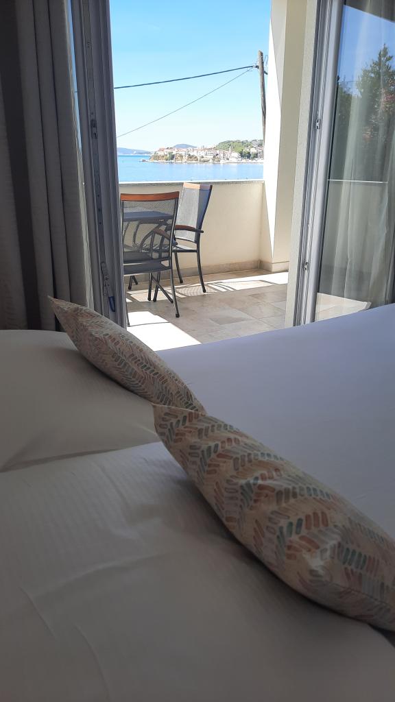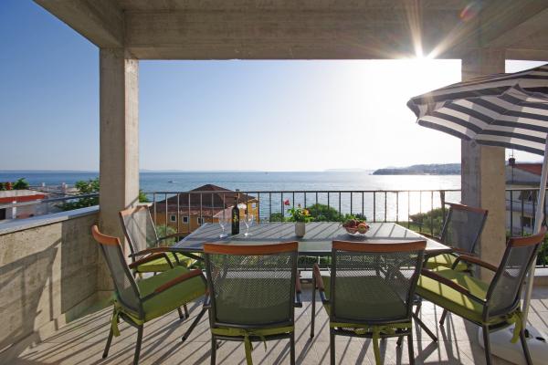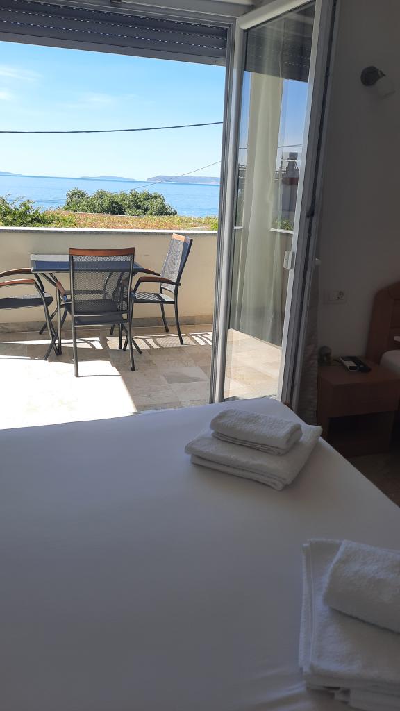 Luxusní velký čistý apartmán s krásným výhledem na moře. Apartmán je plně vybaven. V každém pokoji je klimatizace. Má dvě terasy. Jedna vnitřní a druhá je venku. Každý apartmán má k dispozici gril a jakuzzi, venkovní sprcha, lehátka. Všechny apartmány jsou s výhledem na moře. Terasa na střeše má nejkrásnější výhled. Pláž je blízko 2min. pěšky. V blízkosti na pláži je několik restaurací. V blízkém okolí jsou potraviny, lékárna, pekárna….. Domácí Ivana a Mário jsou stdeční, pečliví a velmi pohostinní. Snesou vám také modré z nebe. Jsme stále v kontaktu. Jsme tady už 5x. Poprvé jsme zde byli 2018 a rádi se zde vracíme. Cítíme se tady jako doma