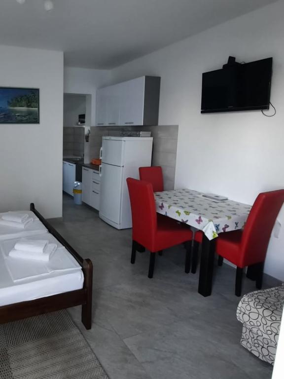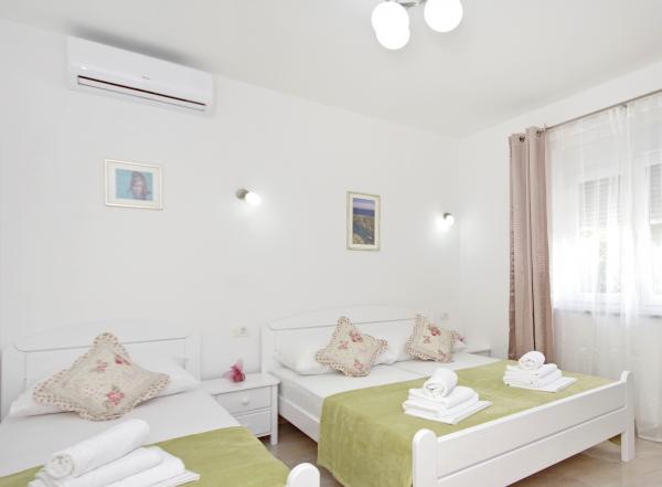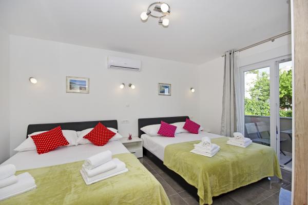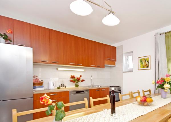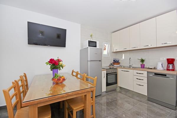 Nádherné čisté ubytování se skvělou paní domácí. Paní domácí je velmi ochotná, a přestože komunikuje v chorvatštině, snaží se vždy srozumitelně vše vysvětlit. Ubytování krásné, vypadá lépe než na fotkách. Měli jsme apartmán 7+2, každý pokoj měl své soc. zařízení se sprchou. Na terase gril, trampolína a houpačky pro děti. Luxusní ubytování, do kterého se jistě ještě vrátíme. Kousíček od moře...