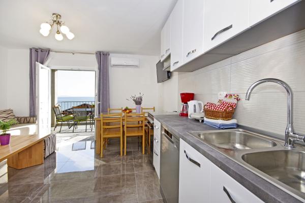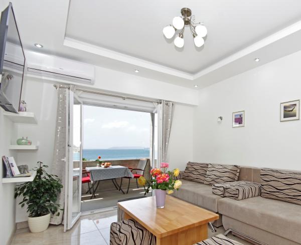 Velmi skvělý byt. Čistá, uklizená, pláž je vzdálena 2 minuty chůze, kde je klidná malá pláž (malá oblázková, pomalu se prohlubující) a samozřejmě krásný výhled. Ivana je nesmírně přímá, vstřícná, milá a je vidět, že hosty opravdu od srdce vítá. Nachází se ve velmi dobré lokalitě, v blízkosti obchodů, restaurací a pobřežních prodejců, zmrzlináren a 2 větší pláže jsou dostupné během několika minut chůze. Cítili jsme se prostě fantasticky, určitě se vrátíme! Vřele doporučuji všem, byli jsme se 2 malými dětmi.