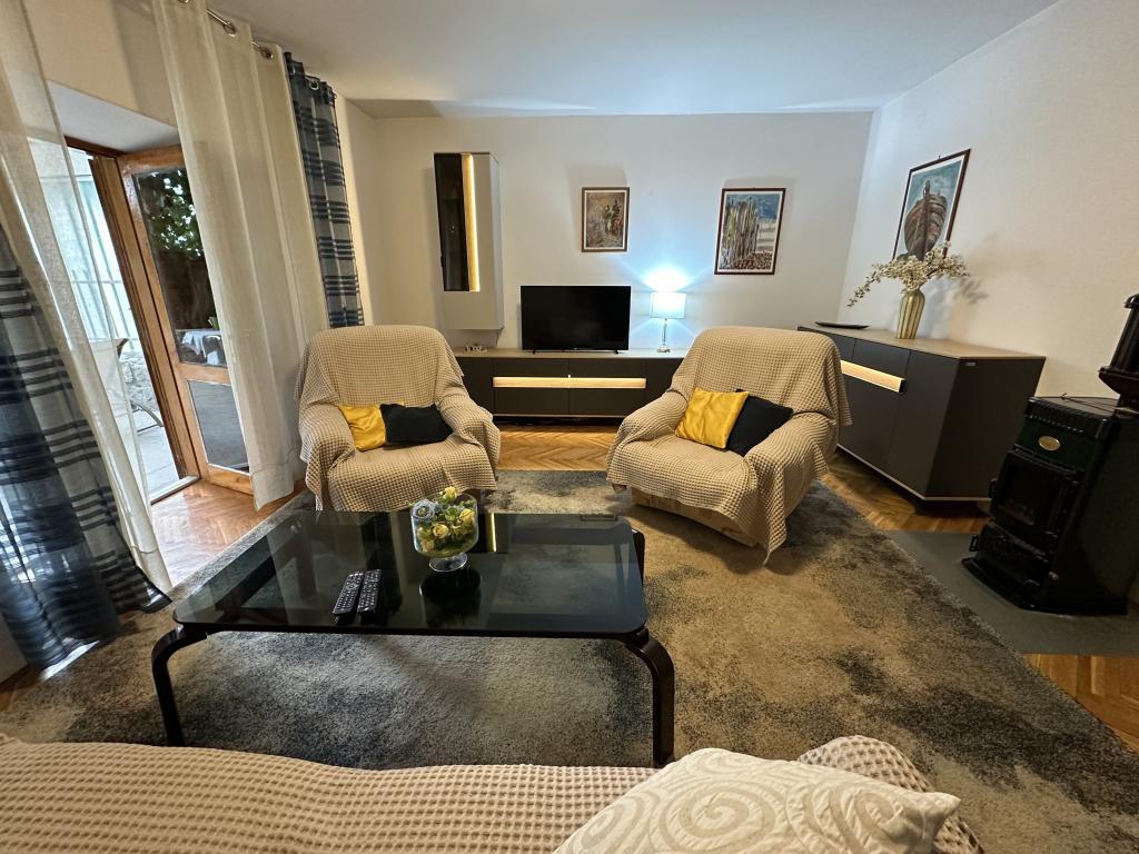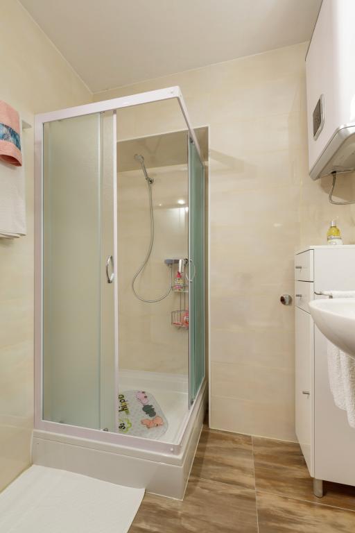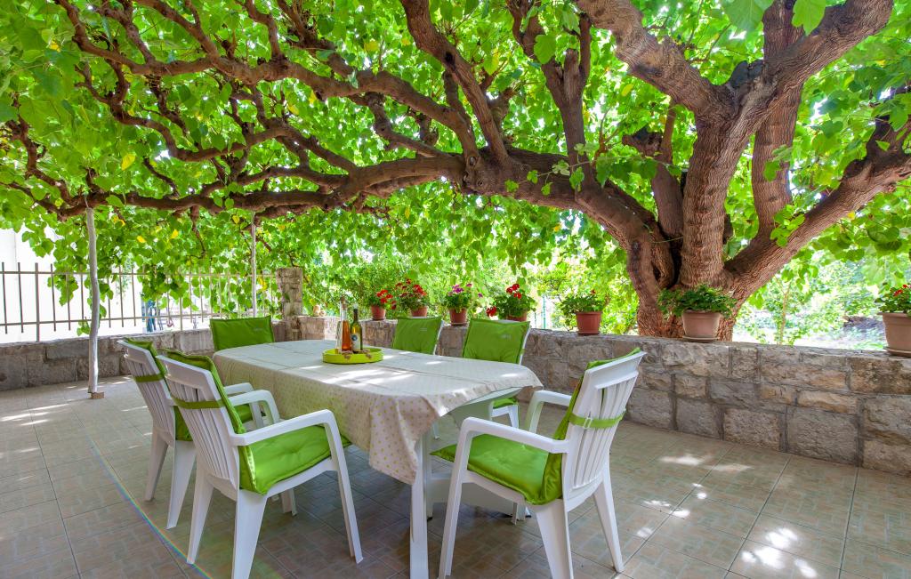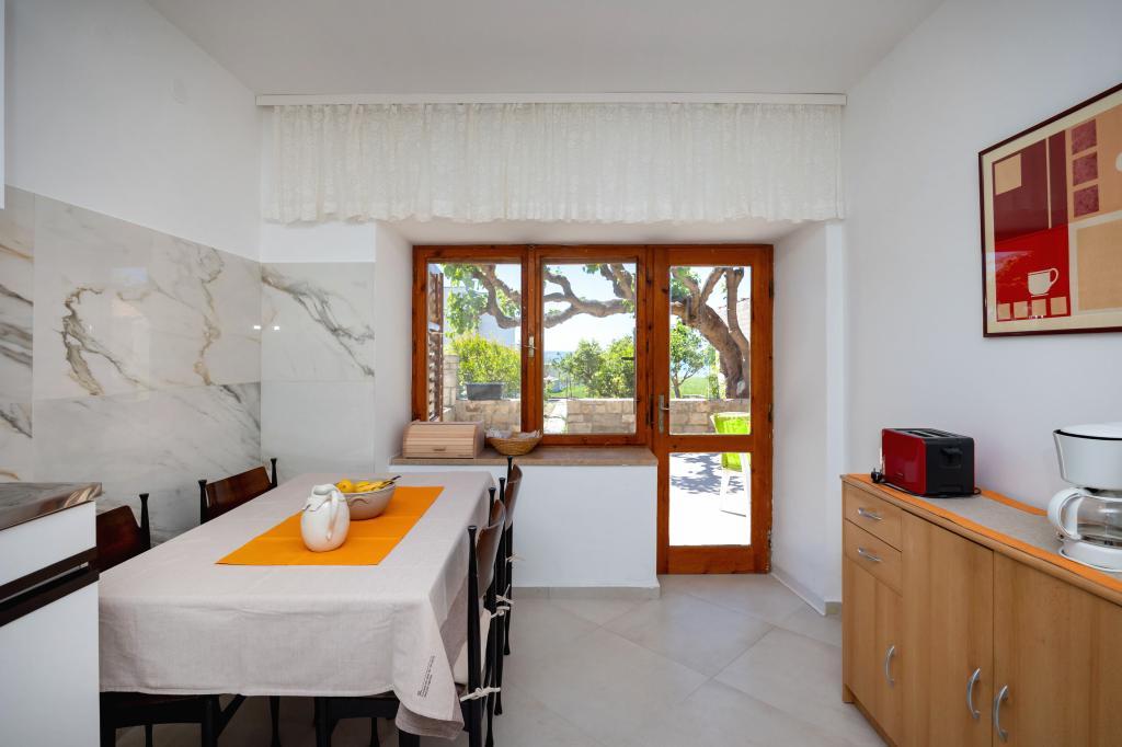 Pronajímáme plně a moderně vybavený kamenný dům o rozloze 182 m2. Dům se nachází 15 m od silnice (severní strana) a 60 m od moře (jižní strana). Před vchodem do domu je parkovací místo pro 2 auta. V přízemí se nachází kuchyň, velký obývací pokoj, koupelna, spíž a další technická místnost, kde je pračka, žehlicí prkno, slunečníky... Z kuchyně a obývacího pokoje je vstup na velkou terasu o rozloze 70 m2 s přírodním stínem divokého morušovníku. Před terasou je malá, krásná zahrada s venkovní sprchou a grilem. Ze zahrady vede na pláž 1,5 m široká cesta. Není třeba přecházet silnici, takže děti mohou jít na pláž bez doprovodu dospělé osoby. V patře se nacházejí 3 ložnice: 2 s manželskou postelí, které se otevírají na velký balkon se stoly a židlemi. Pokoje mají výhled na moře. Na severní straně je další ložnice se dvěma samostatnými lůžky. V patře se nachází další velká koupelna.