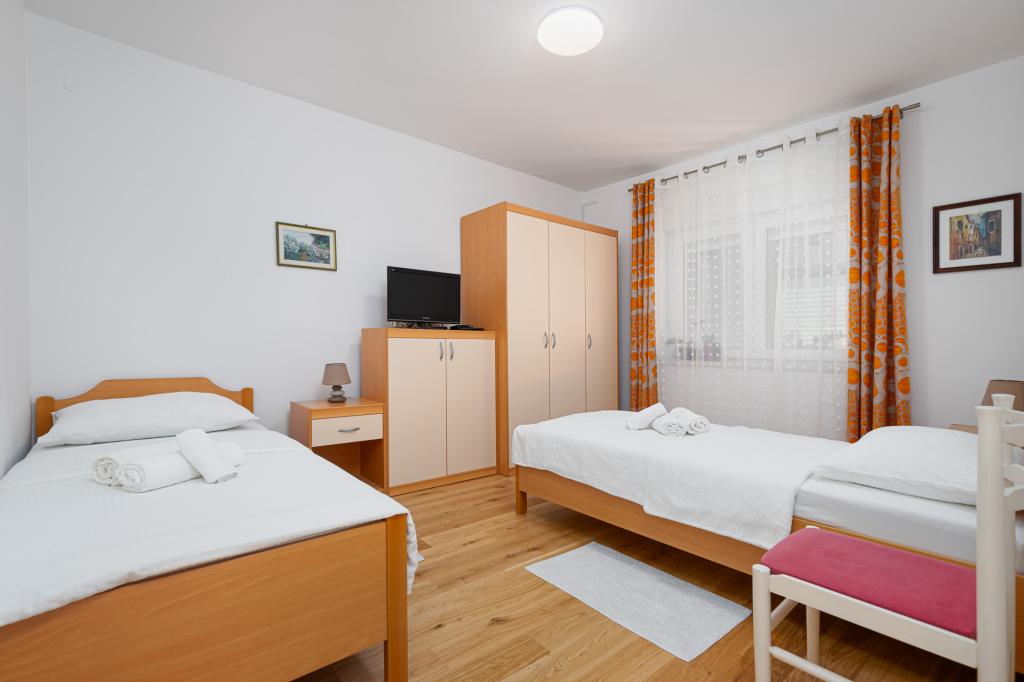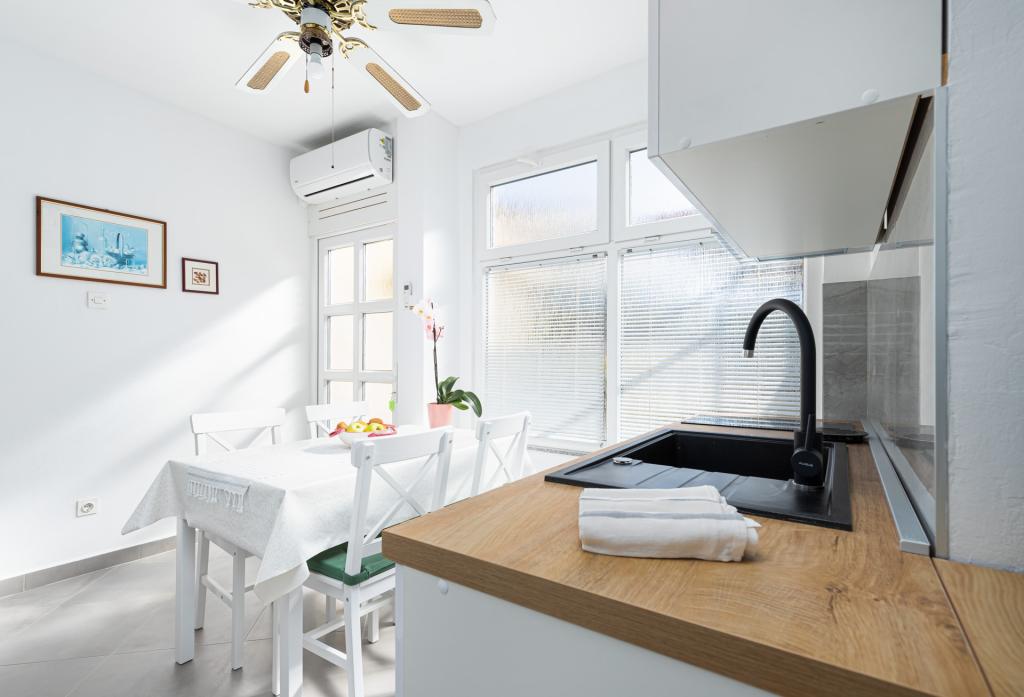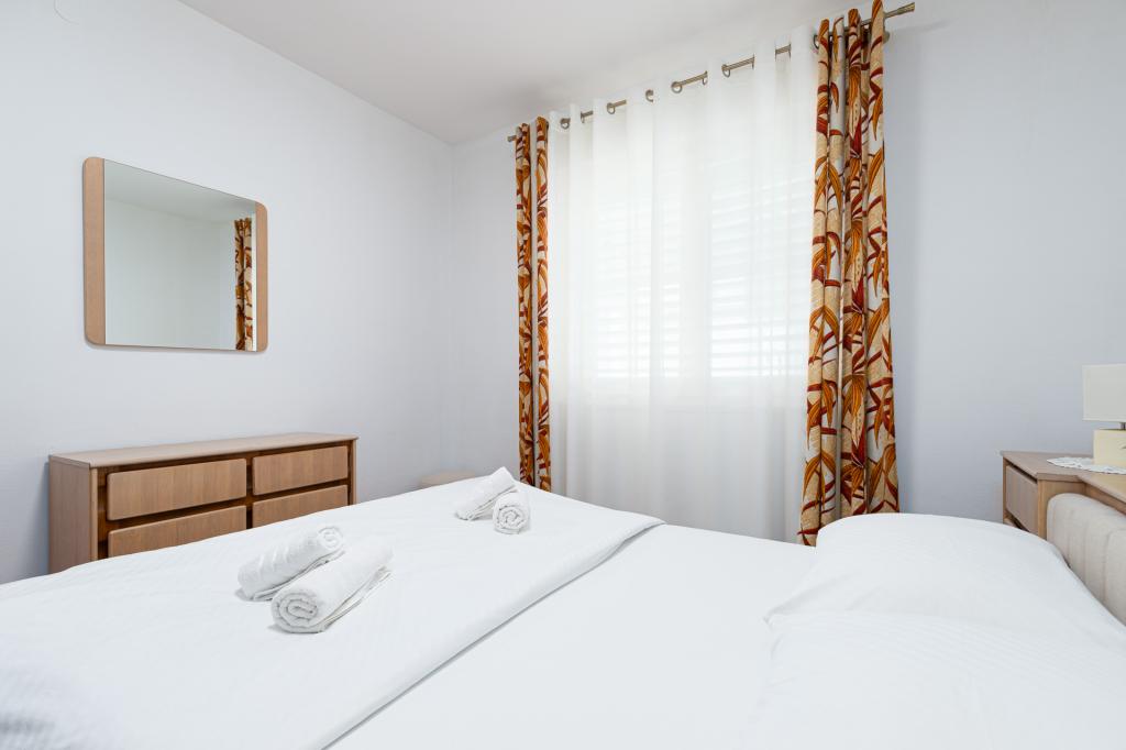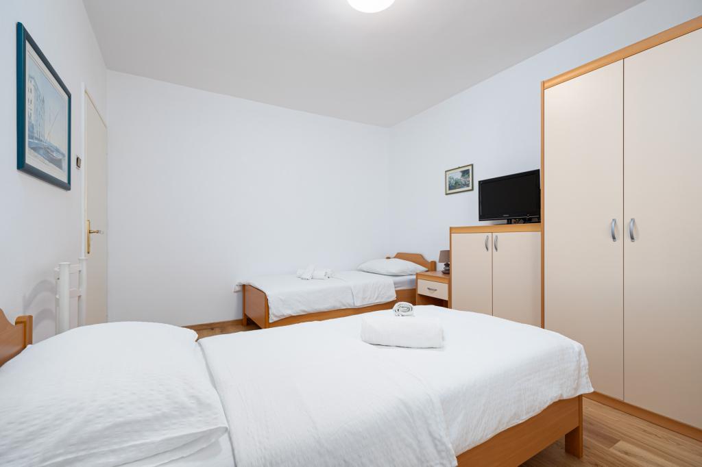 Byt je vkusně zařízen a může ubytovat až čtyři osoby. Skládá se z obývacího pokoje, plně vybavené kuchyně, jídelního stolu, jedné dvoulůžkové ložnice s manželskou postelí a jedné ložnice se dvěma samostatnými lůžky a TV s plochou obrazovkou a koupelny. V přední části bytu ve velmi příjemné atmosféře je posezení. V ceně pronájmu bytu je zahrnuto použití: ložního prádla, ručníků, Wi-Fi a klimatizace.