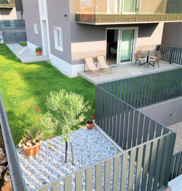 V novostavbě městské vily se v přízemí domu nachází byt Lemon3 s přilehlou upravenou zahradou cca 150 m2. Lokalita je chráněna před provozem z ulice, takže poskytne všem hostům klid a pohodu ve večerních hodinách. Nábytek je zcela nový, převážně od chorvatských výrobců. Byt je 65 m2 a má dvě ložnice, dvě koupelny se sprchovým koutem, obývací pokoj a kuchyň. Ve dvoře je terasa pro užívání, opalování nebo trávení času venku. Odpočiňte si v tomto pohodlném a krásně zařízeném ubytování.