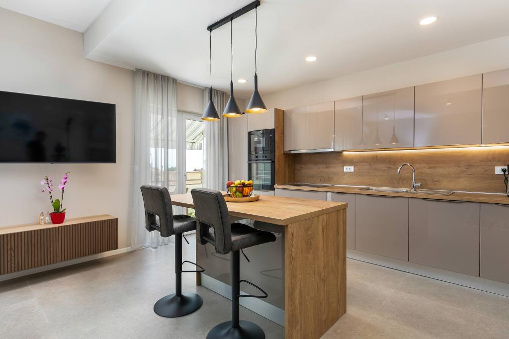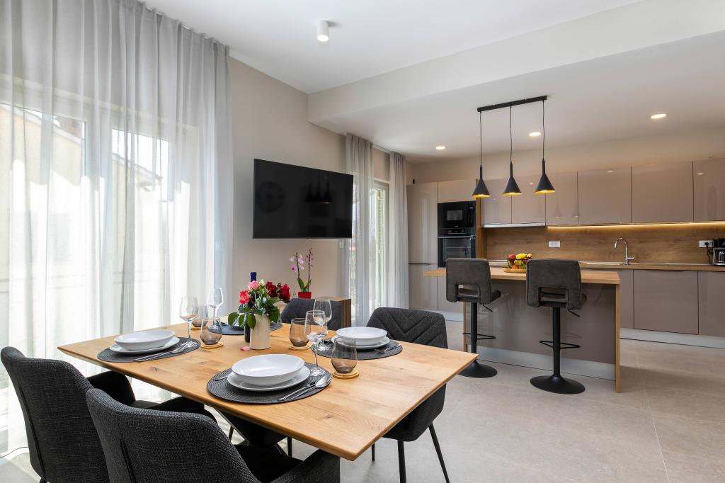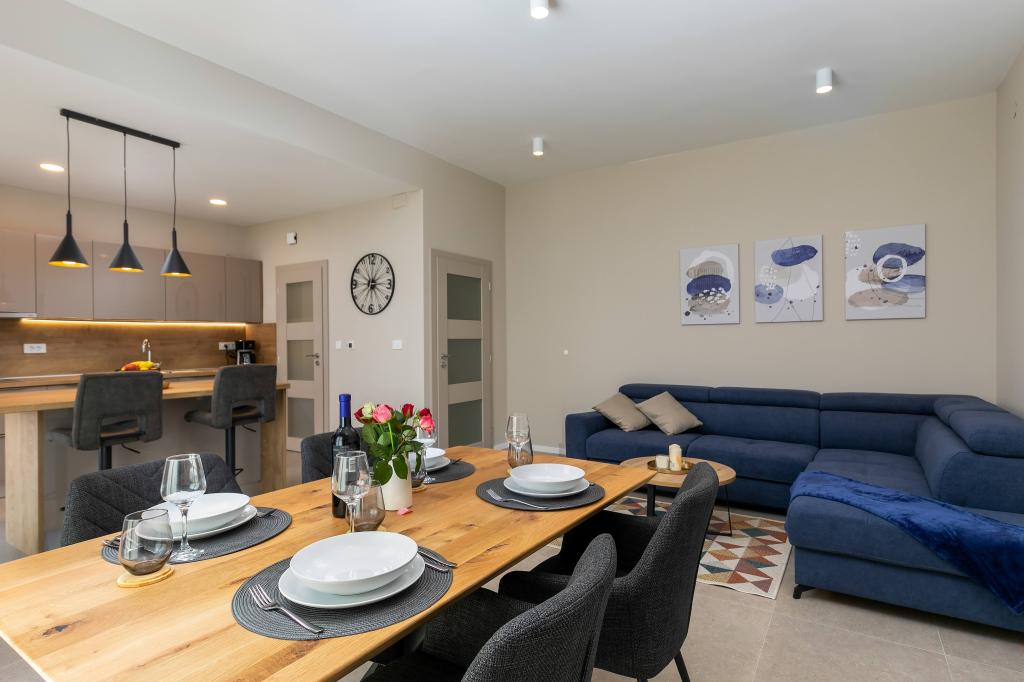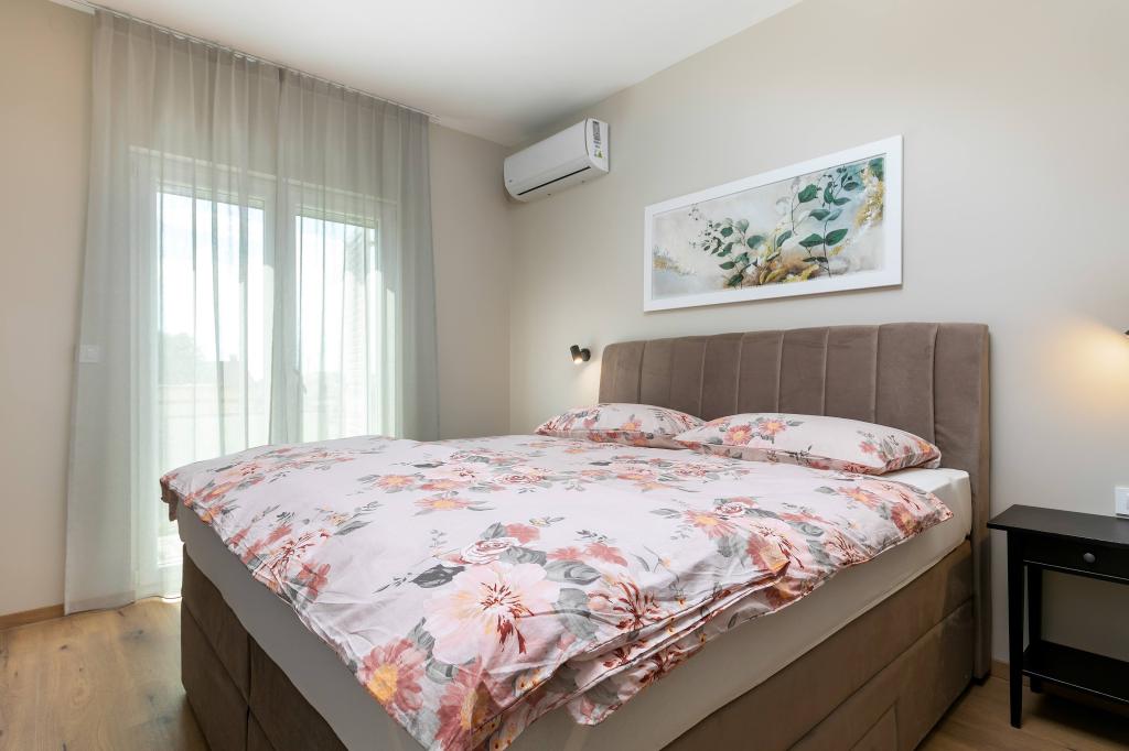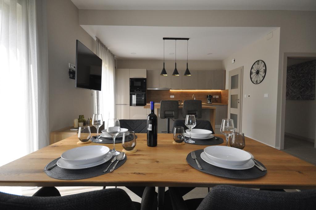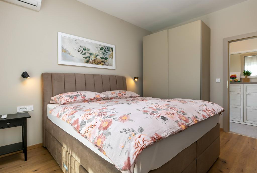 Poreč, Apartmán Nona Ana, nově zrekonstruovaný apartmán s jednou ložnicí, koupelnou, prostorným obývacím pokojem s jídelnou a kuchyní a balkonem. Kuchyně je vybavena myčkou, mikrovlnnou troubou, troubou, kávovarem s filtrem a kávovarem na espresso, rychlovarnou konvicí a toustovačem. V bytě je dále TV-SAT, Wi-Fi, fén, žehlička na žehlení prádla, v koupelně pračka. Byt je vytápěn a chlazen pomocí invertorové klimatizace umístěné v obývacím pokoji a v ložnici. Byt se nachází v 1. patře. Parkování zajištěno ve dvoře. Vzdálenost od moře je jen 900m-1000m, vzdálenost od trhu 500m, restaurace 600m, vzdálenost od centra 2500m.