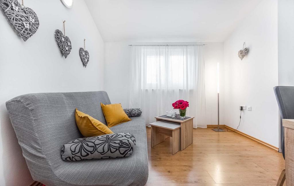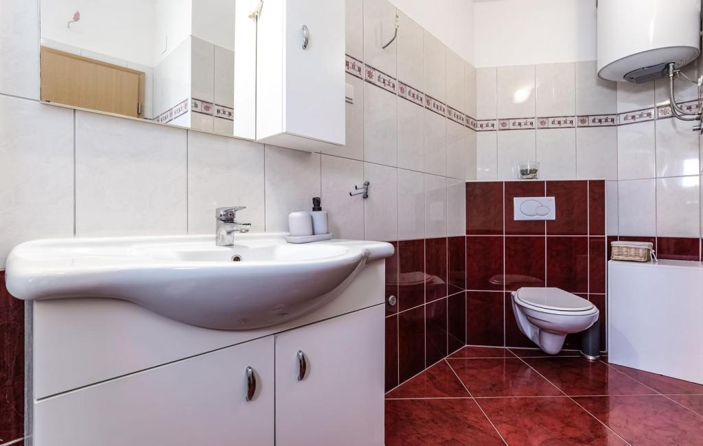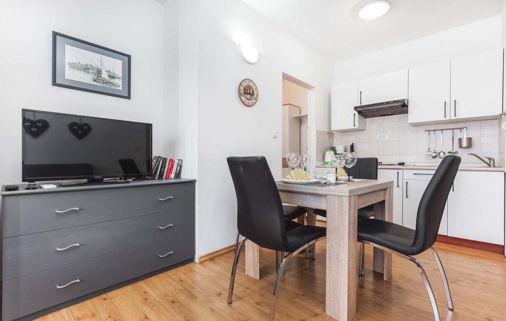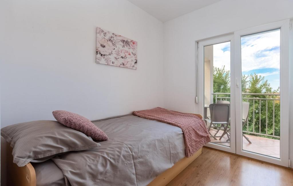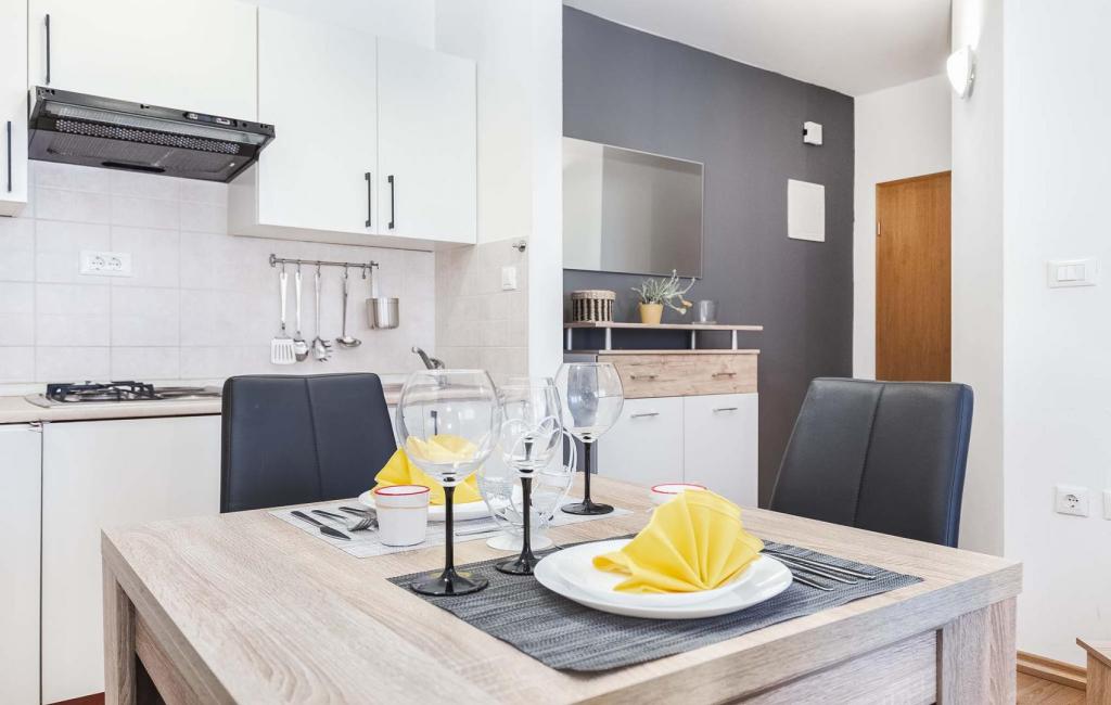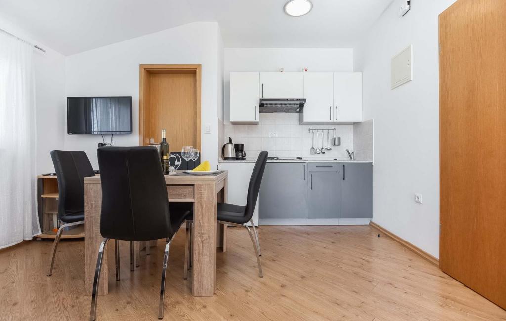 Apartmán Nikolina 1 B4 se nachází v bytovém domě v centru města, pouhých 200 metrů od pláže. Apartmán může ubytovat 4-5 osob. To má jednu ložnici s manželskou postelí, obývací pokoj s rozkládací pohovka, která slouží jako lůžko pro 2 osoby v jídelně a další pohovkou, která slouží jako ležel na pátou osobu. V kuchyni je plně vybaven. V obývacím pokoji je prostorný balkon. Parkování pro hosty je na silnici mimo budovu.